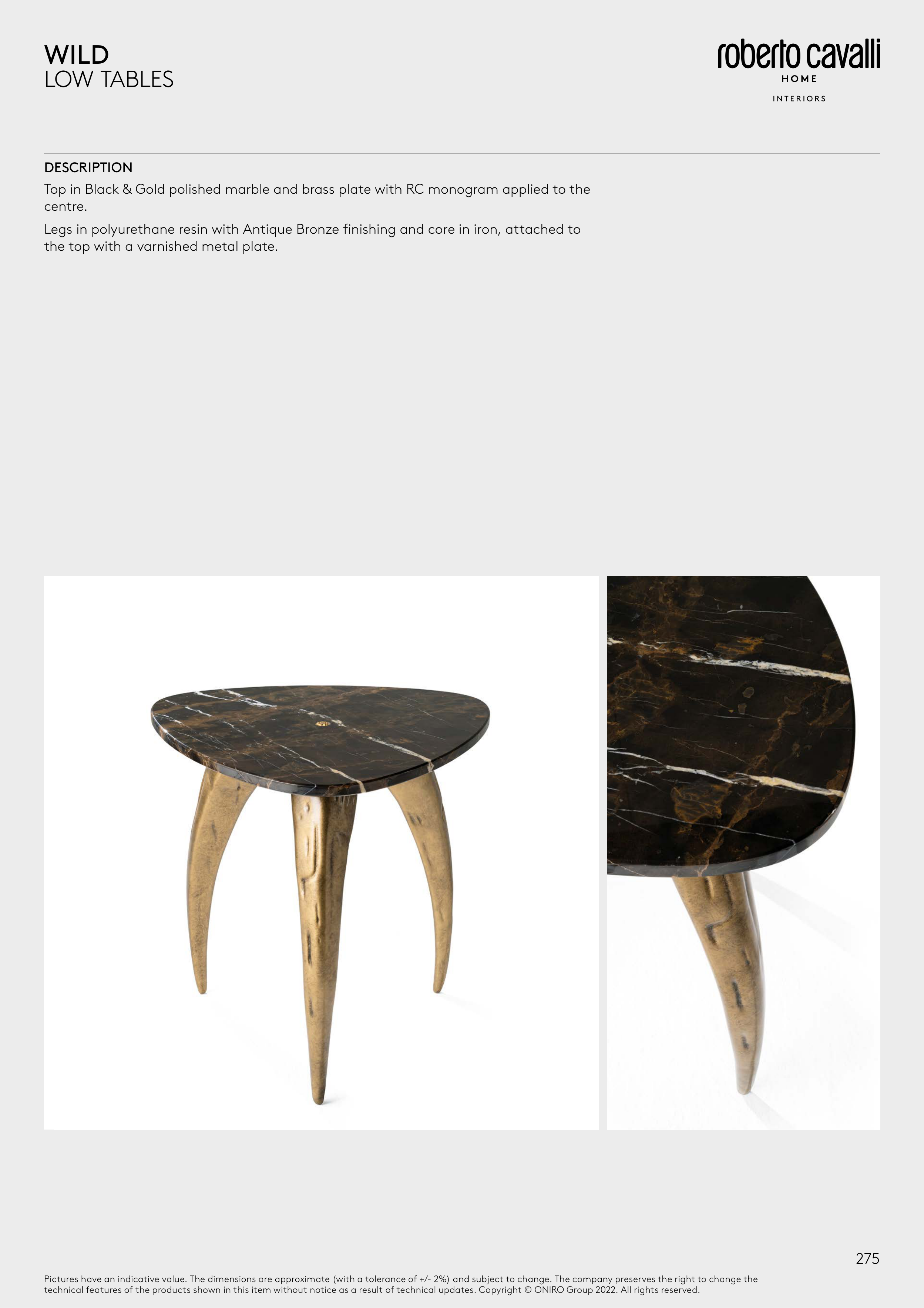 Legs in polyurethane resin with Antique Bronze finishing and core in iron, attached to