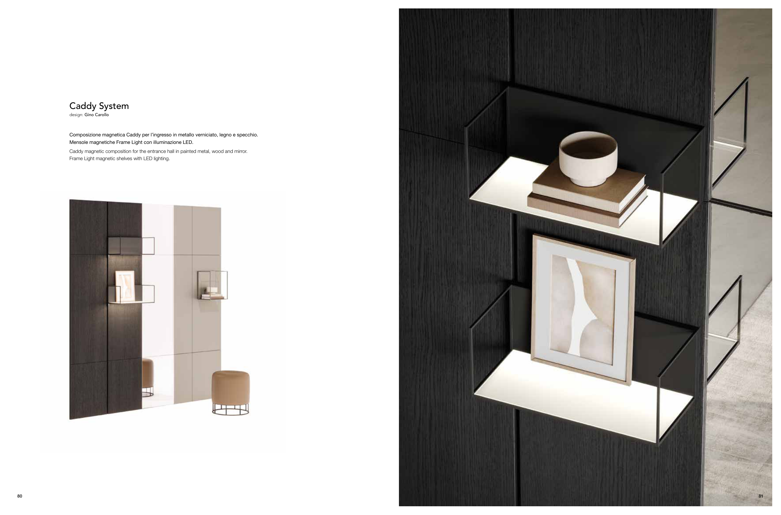 Frame Light magnetic shelves with LED lighting.