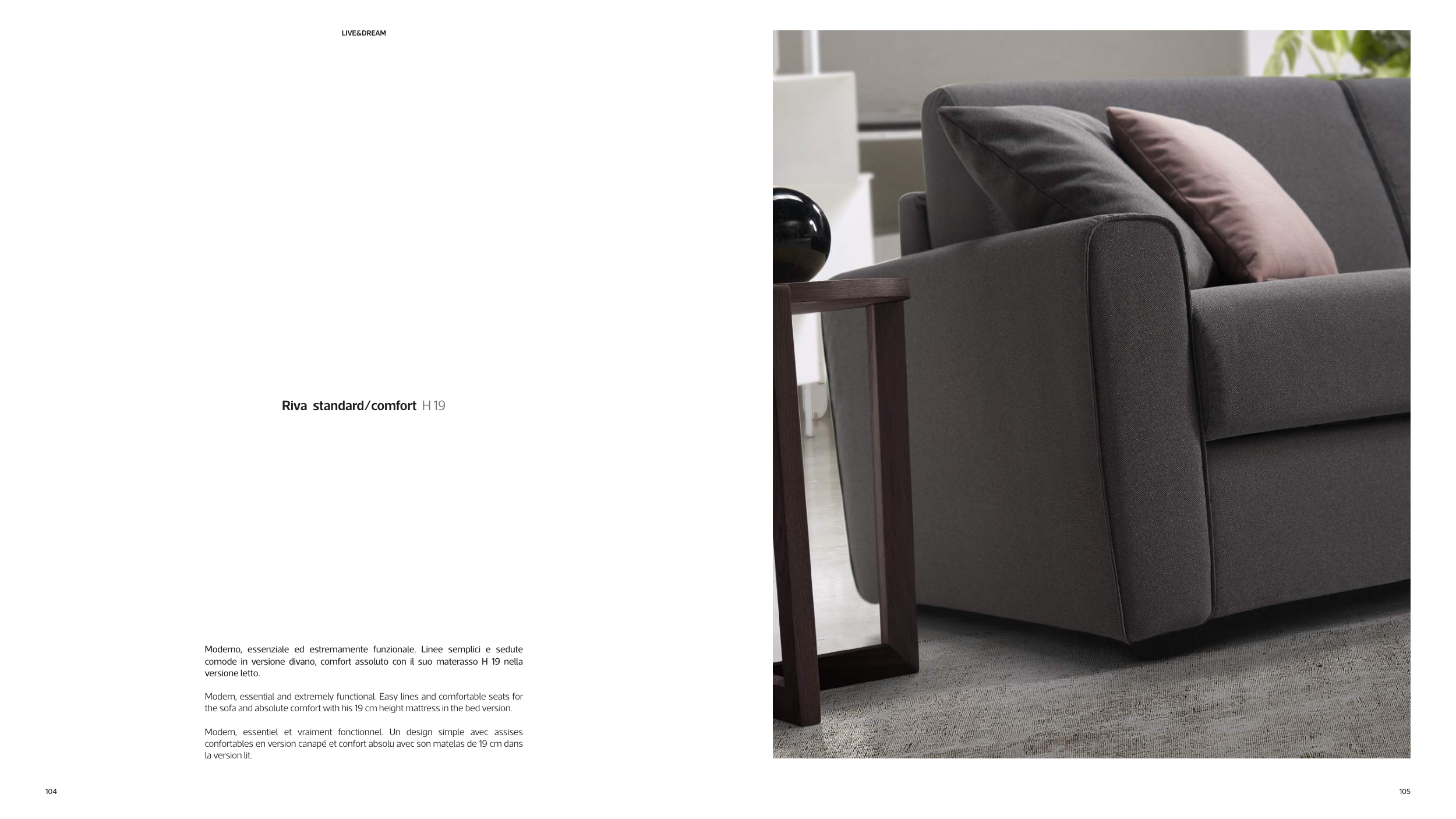 the sofa and absolute comfort with his 19 cm height mattress in the bed version.