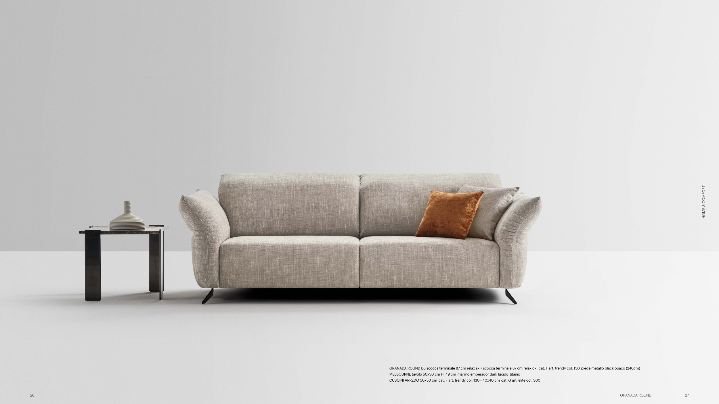 GRANADA ROUND B6 scocca terminale 87 cm relax sx + scocca terminale 87 cm relax dx _cat. F art. trendy col. 130_piede metallo black opaco (240cm)