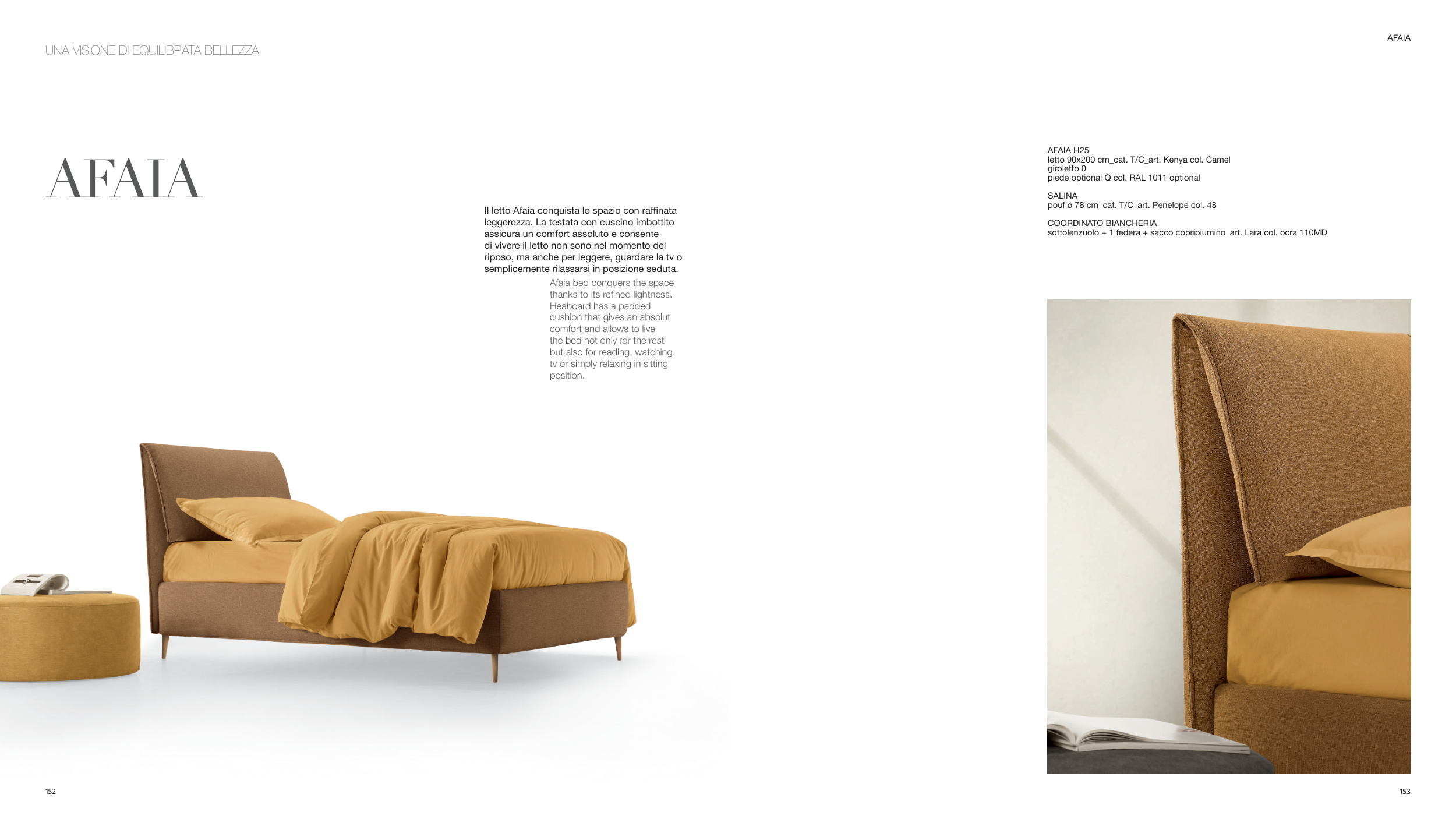Il letto Afaia conquista lo spazio con raffinata