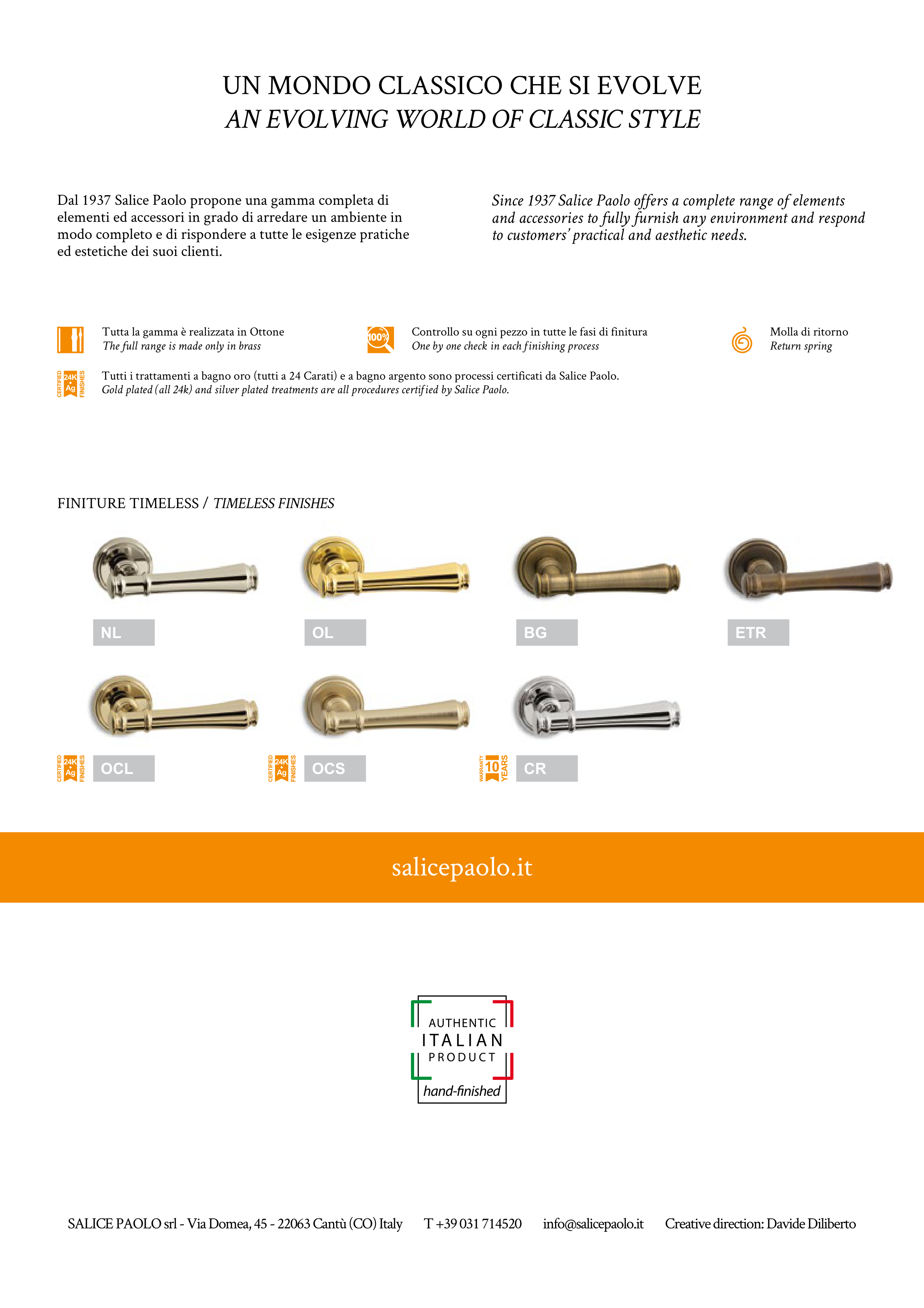 SALICE PAOLO srl - Via Domea, 45 - 22063 Cantù (CO) Italy T +39 031 714520 info@salicepaolo.it Creative direction: Davide Diliberto