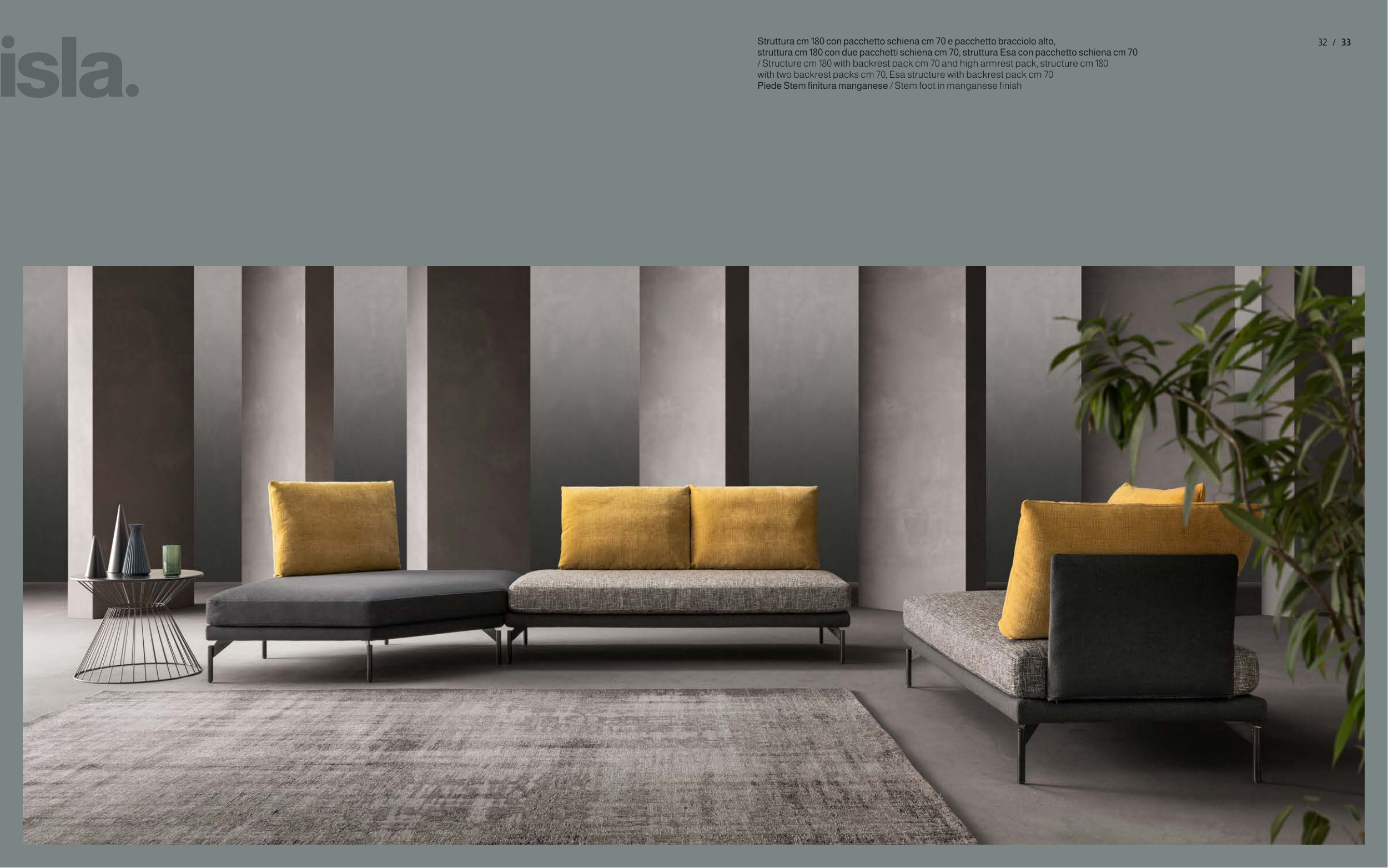/ Structure cm 180 with backrest pack cm 70 and high armrest pack, structure cm 180