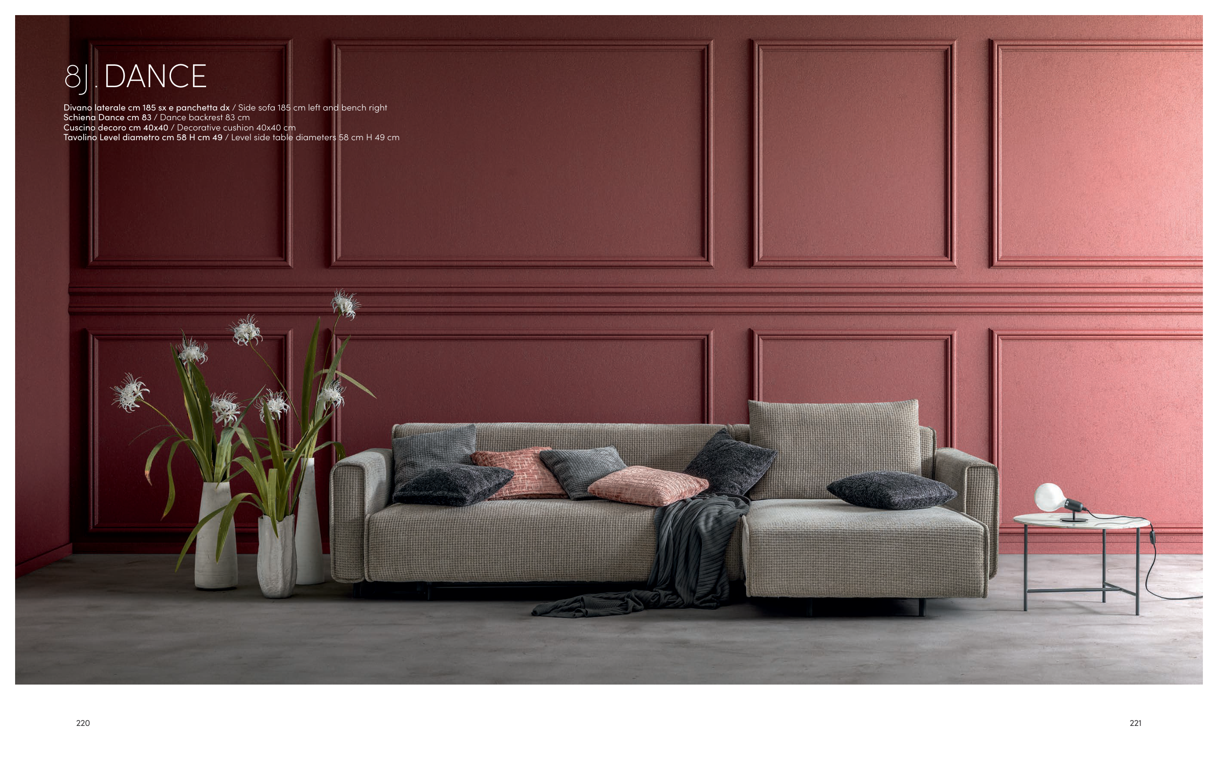 Divano laterale cm 185 sx e panchetta dx / Side sofa 185 cm left and bench right