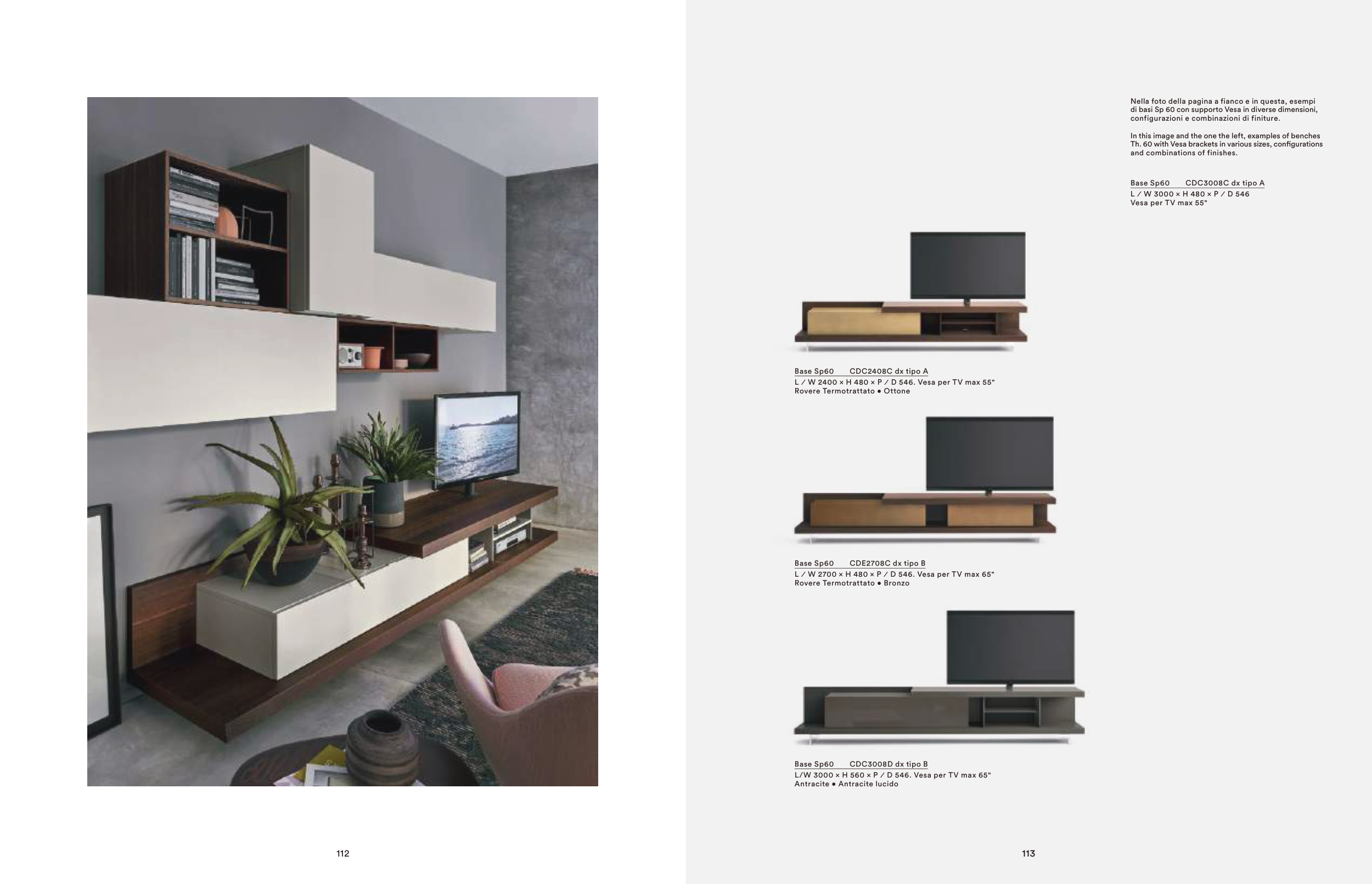 L/W 3000 × H 560 × P ⁄ D 546. Vesa per TV max 65"