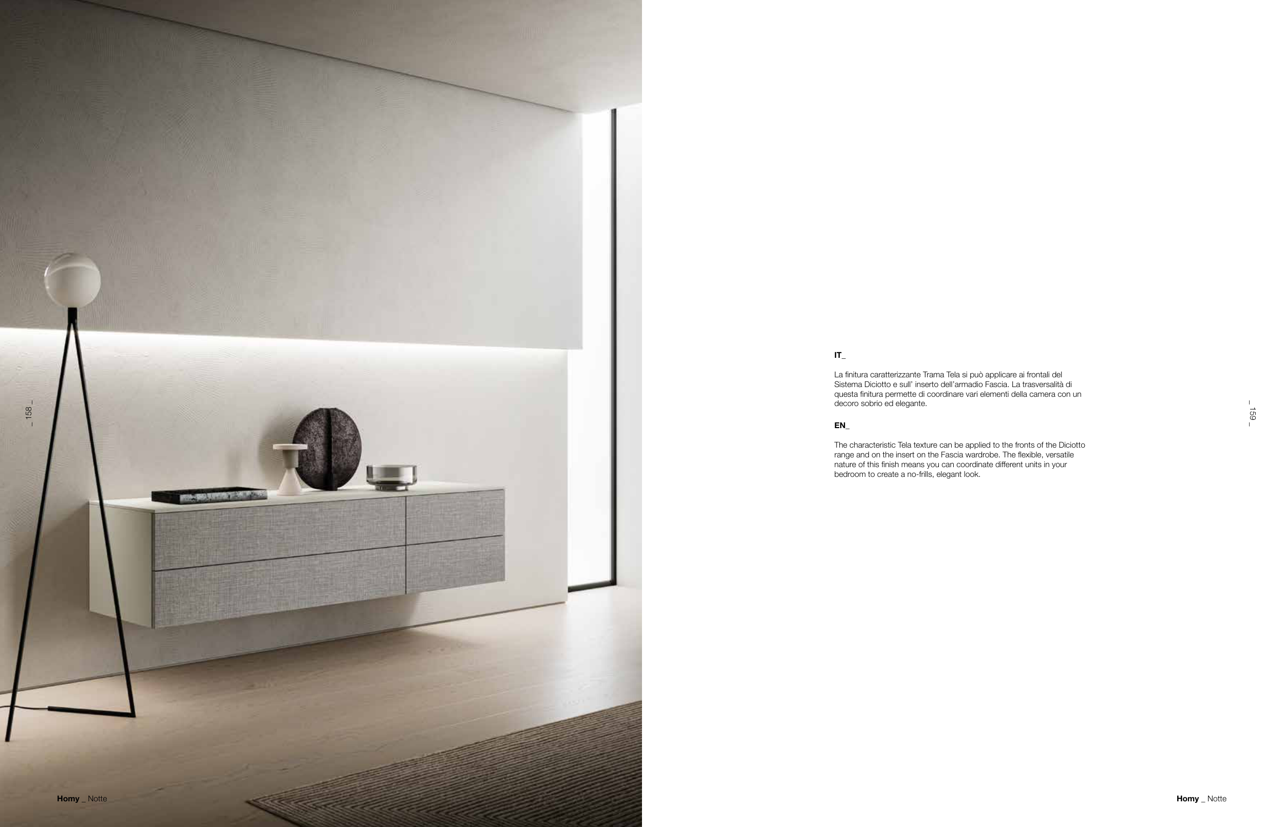 The characteristic Tela texture can be applied to the fronts of the Diciotto