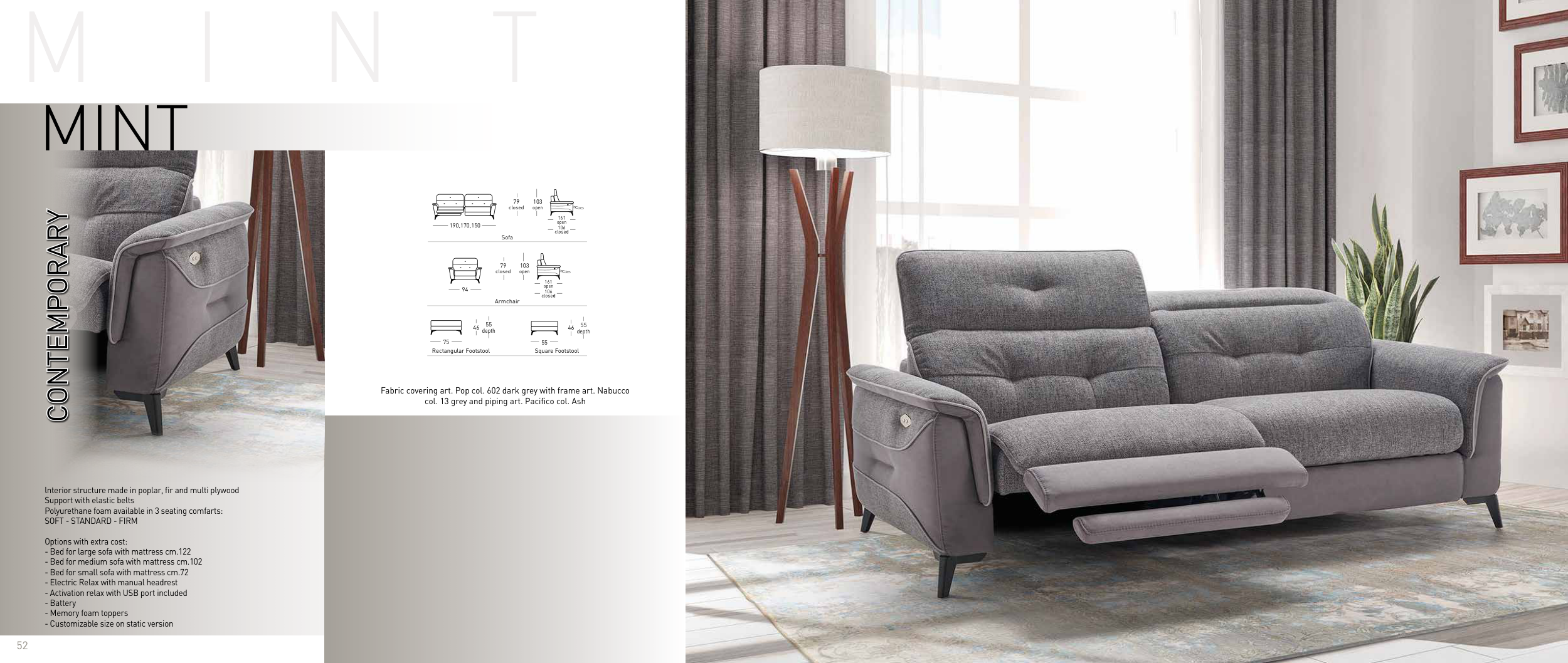 Fabric covering art. Pop col. 602 dark grey with frame art. Nabucco