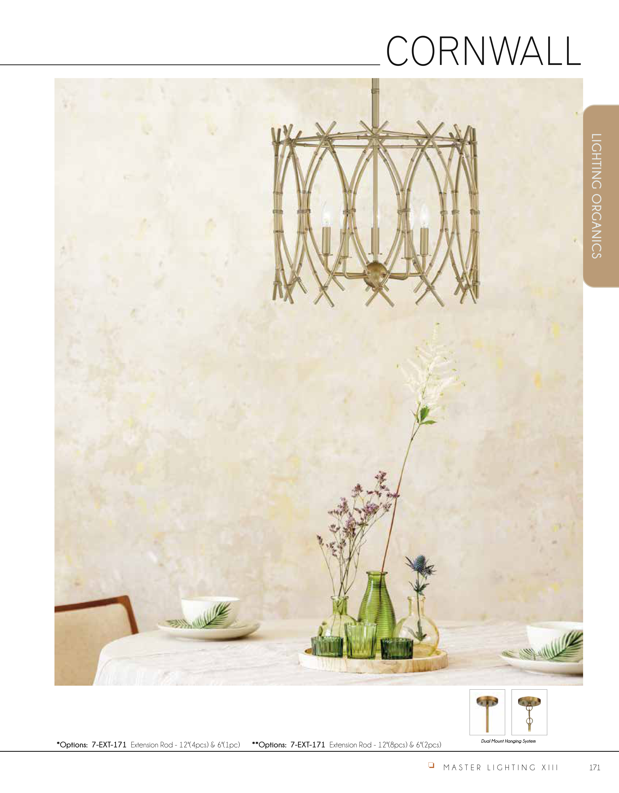 M A S T E R L I G H T I N G X I I I 171 o LIGHTING ORGANICS CORNWALL *Options: 7-EXT-171 Extension Rod - 12"(4pcs) & 6"(1pc) **Options: 7-EXT-171 Extension Rod - 12"(8pcs) & 6"(2pcs) Dual Mount Hanging System