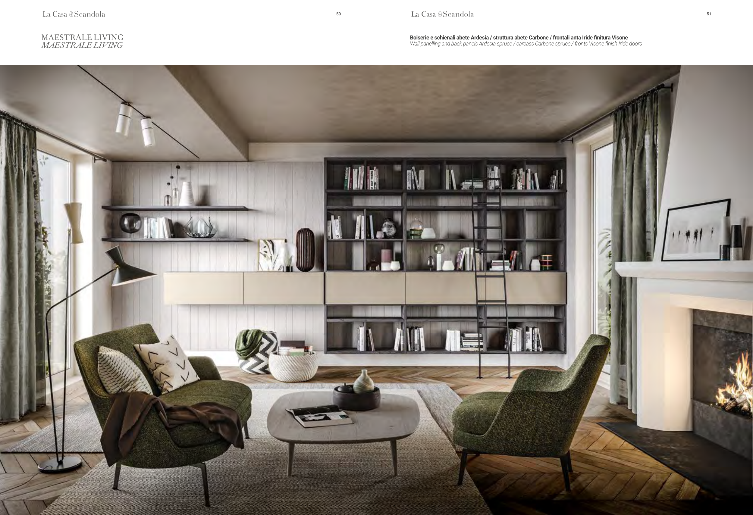 Wall panelling and back panels Ardesia spruce / carcass Carbone spruce / fronts Visone finish Iride doors