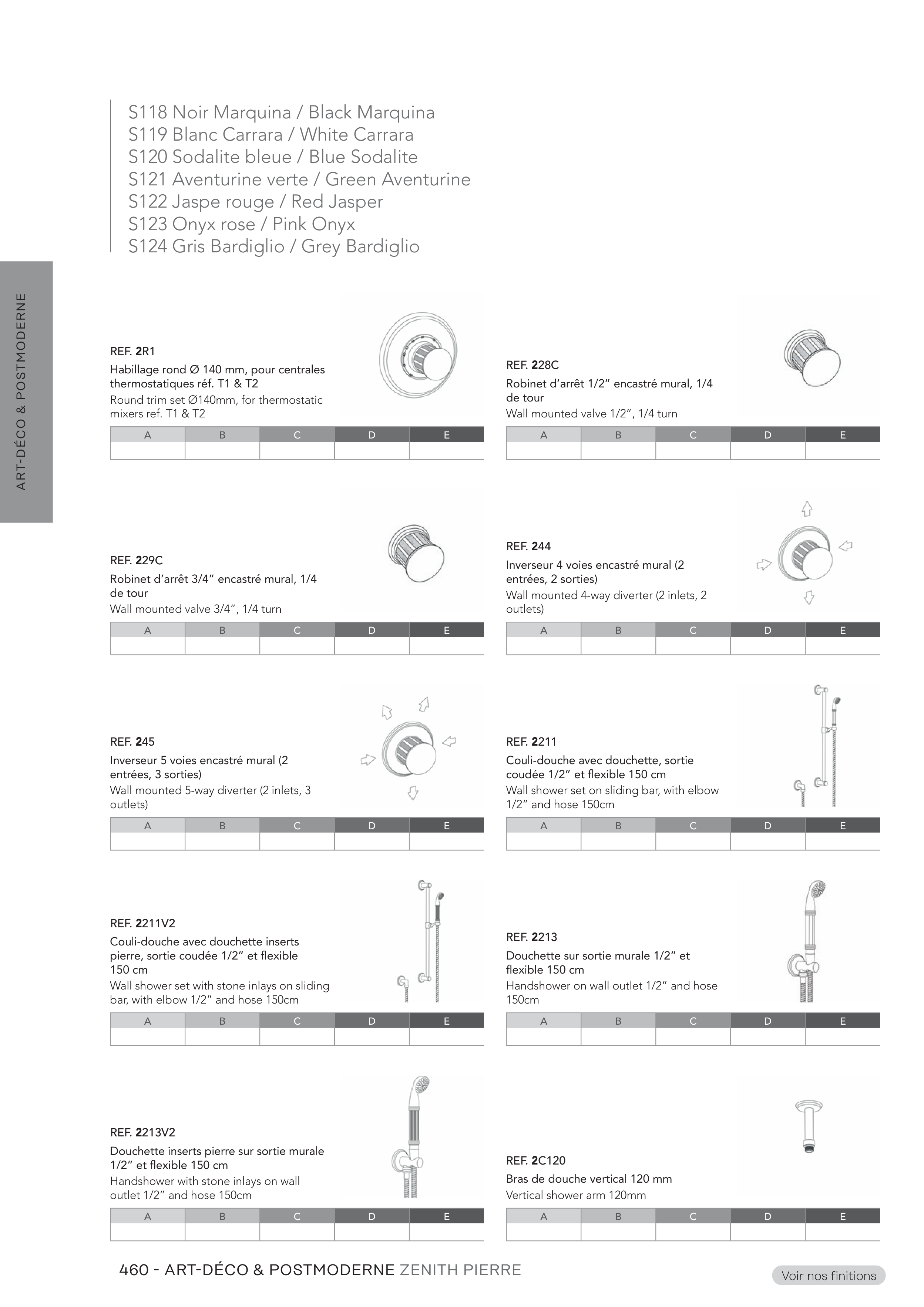 Douchette inserts pierre sur sortie murale