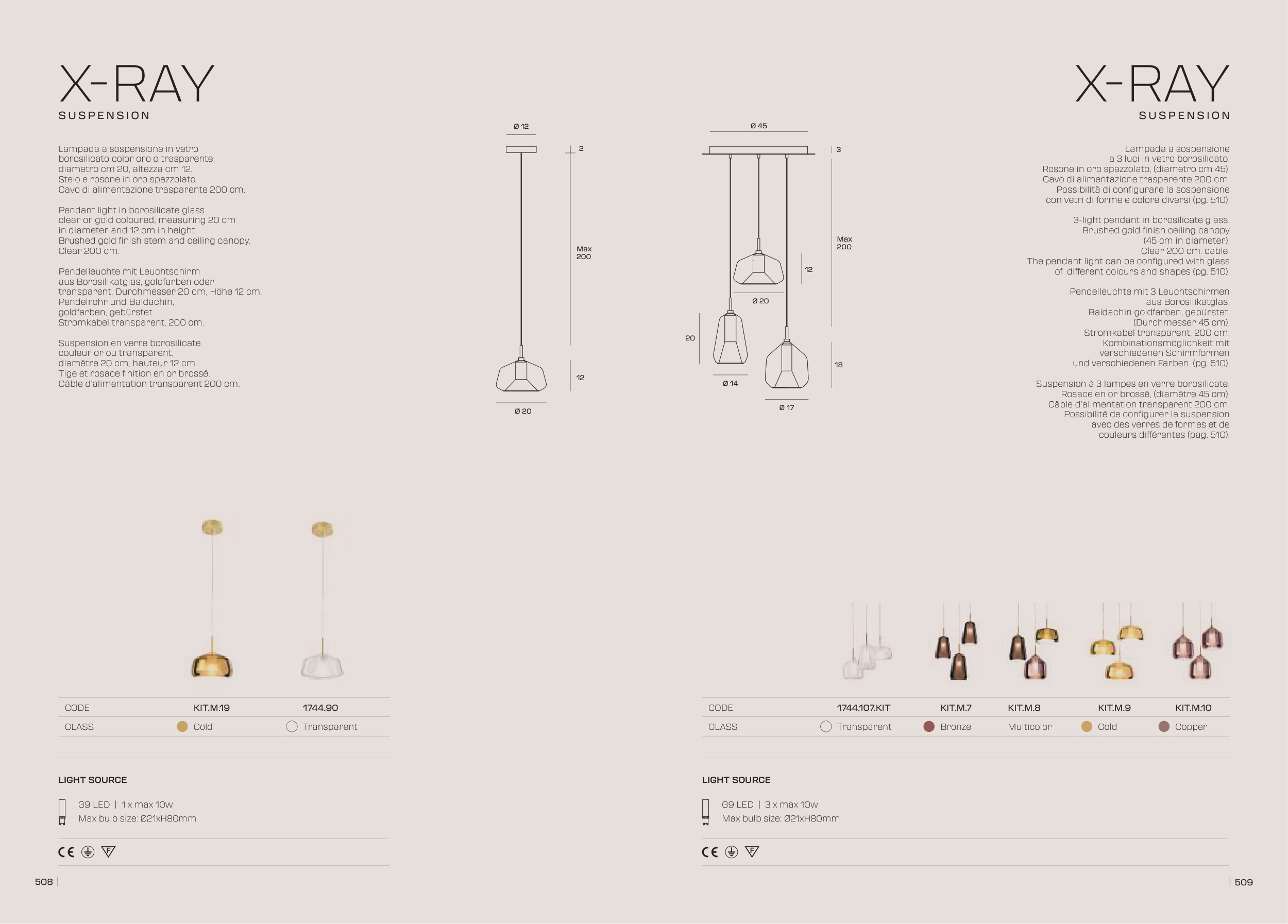 borosilicato color oro o trasparente,