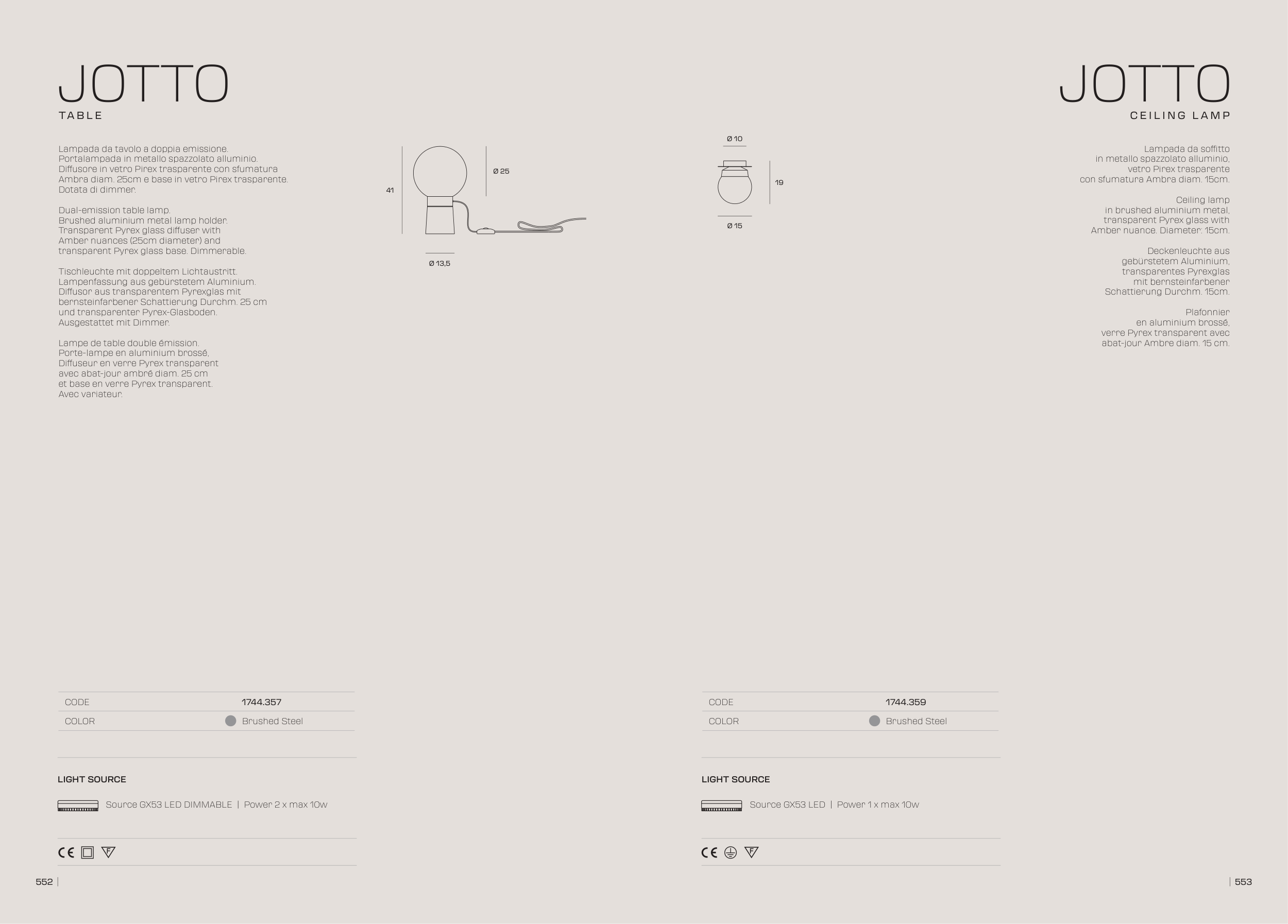 Ambra diam. 25cm e base in vetro Pirex trasparente.