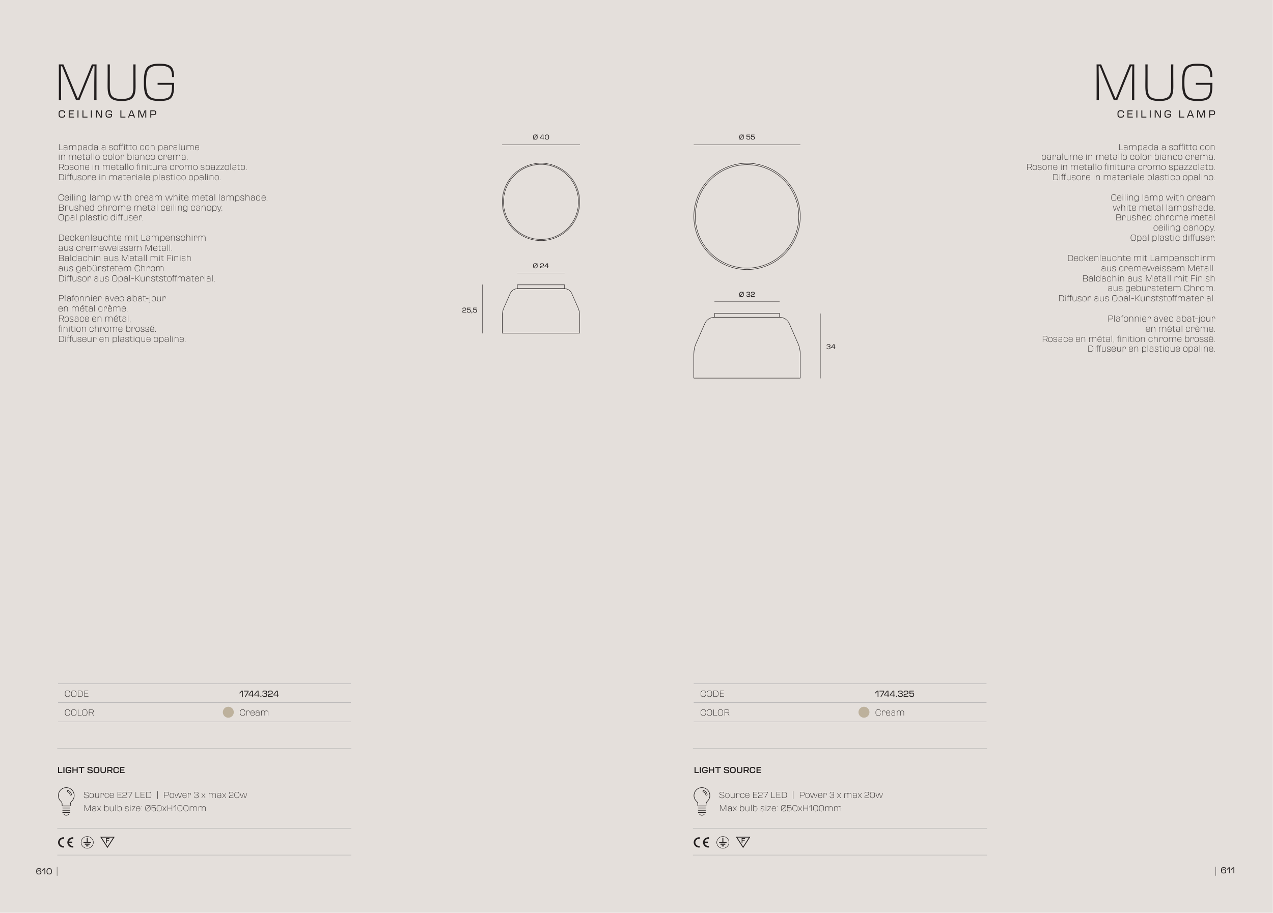 Max bulb size: Ø50xH100mm