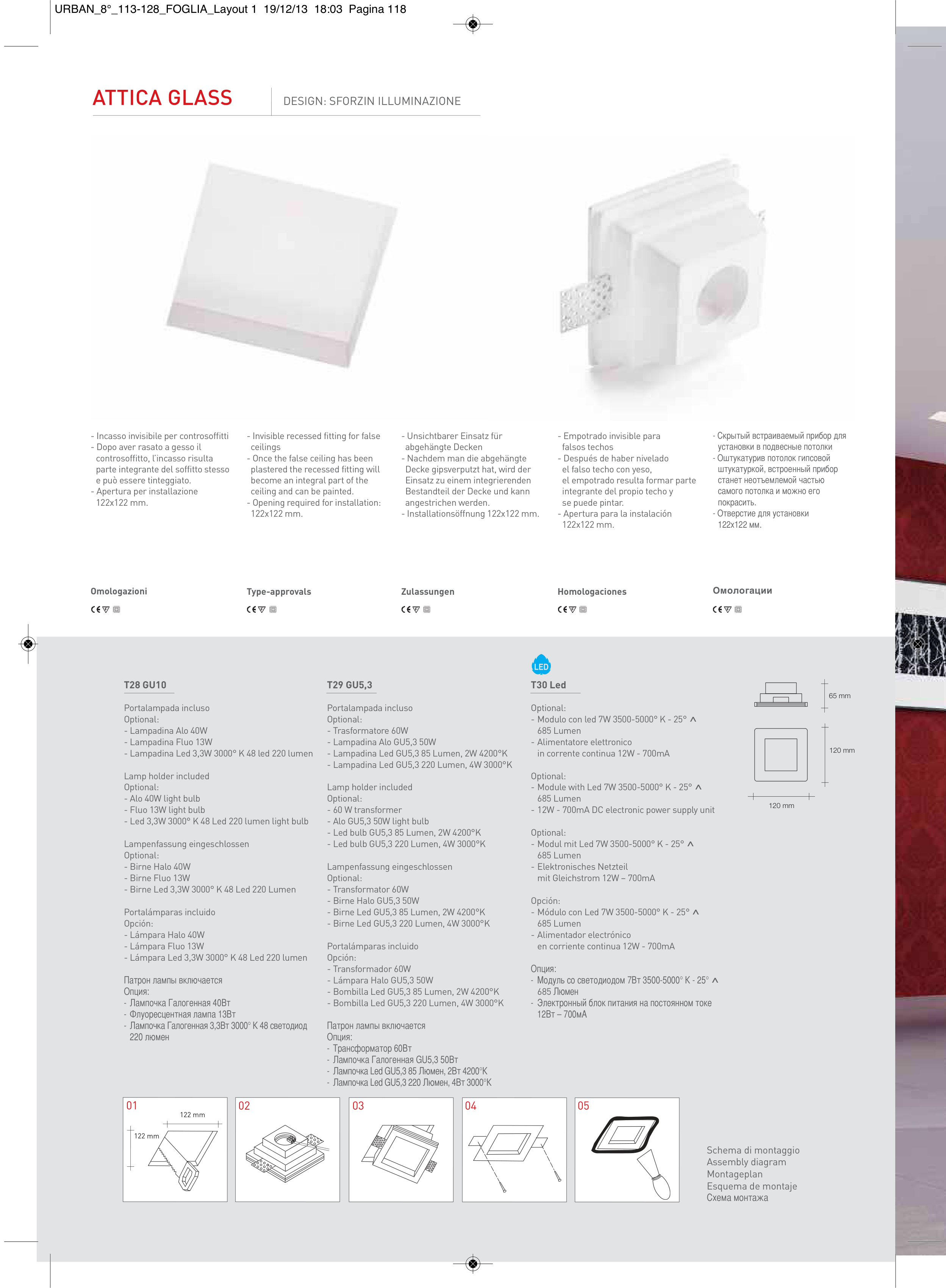 - Installationsöffnung 122x122 mm.
