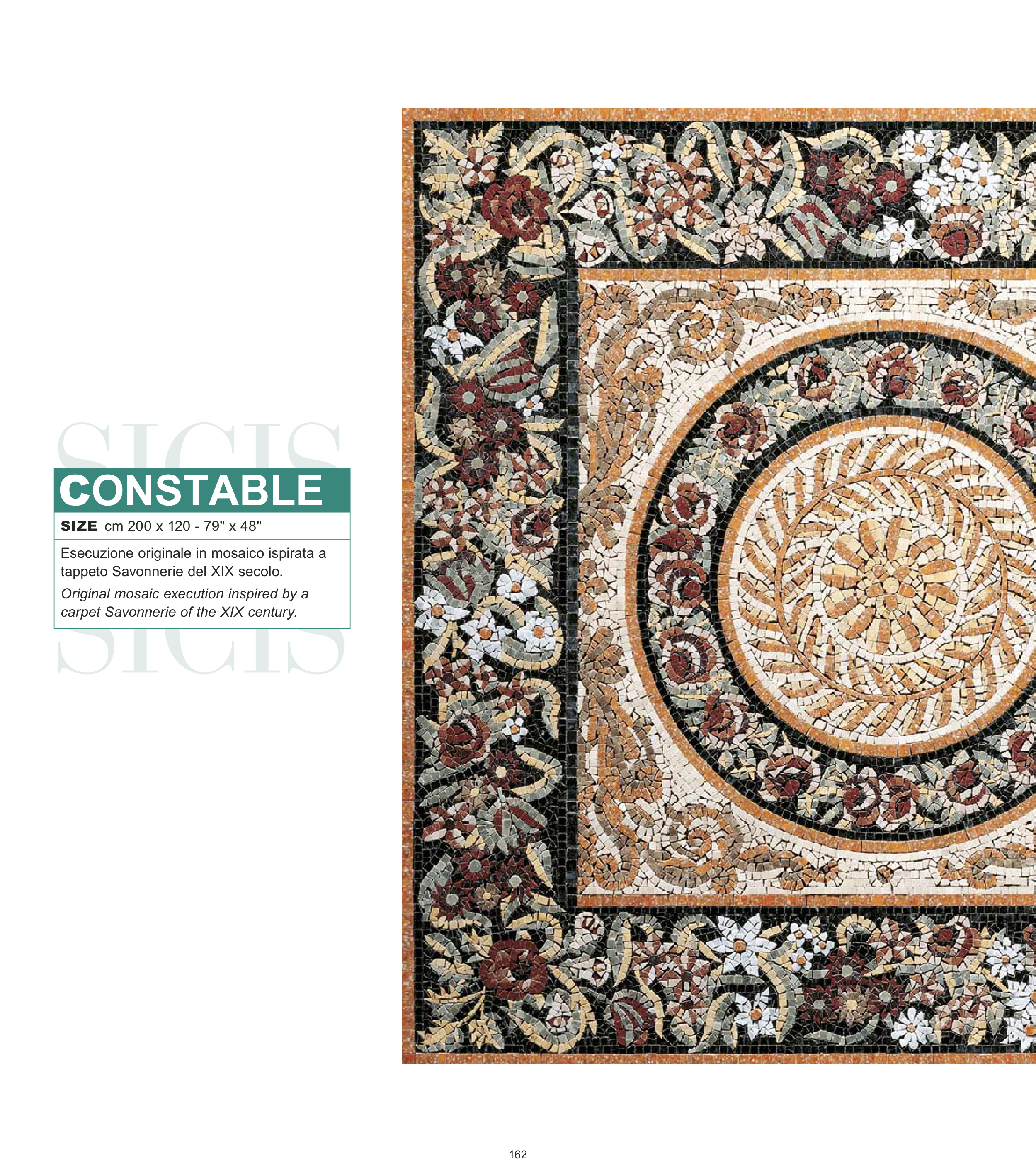 Esecuzione originale in mosaico ispirata a tappeto Savonnerie del XIX secolo. Original mosaic execution inspired by a carpet Savonnerie of the XIX century. CONSTABLE 162