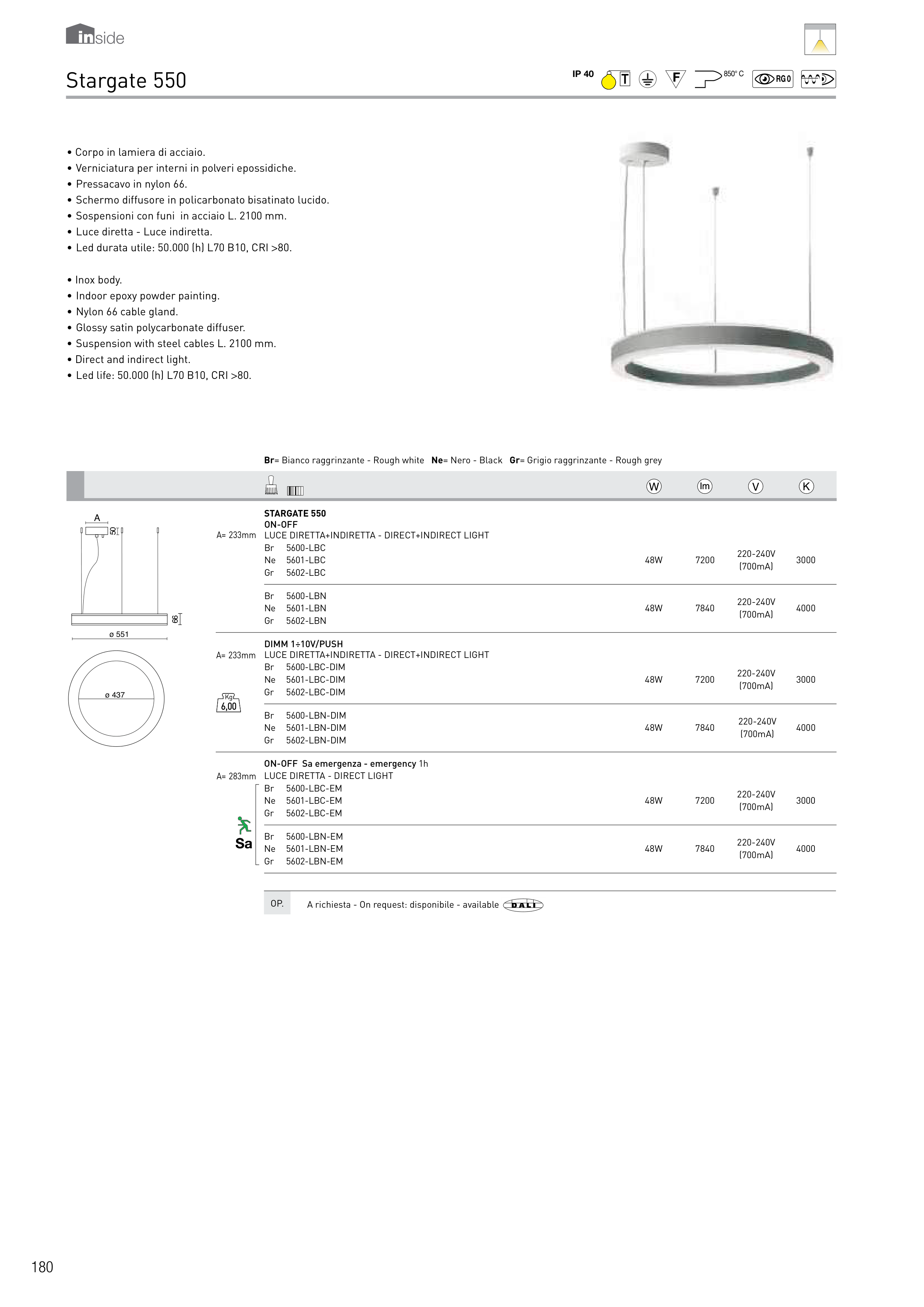 • Led durata utile: 50.000 (h) L70 B10, CRI >80.