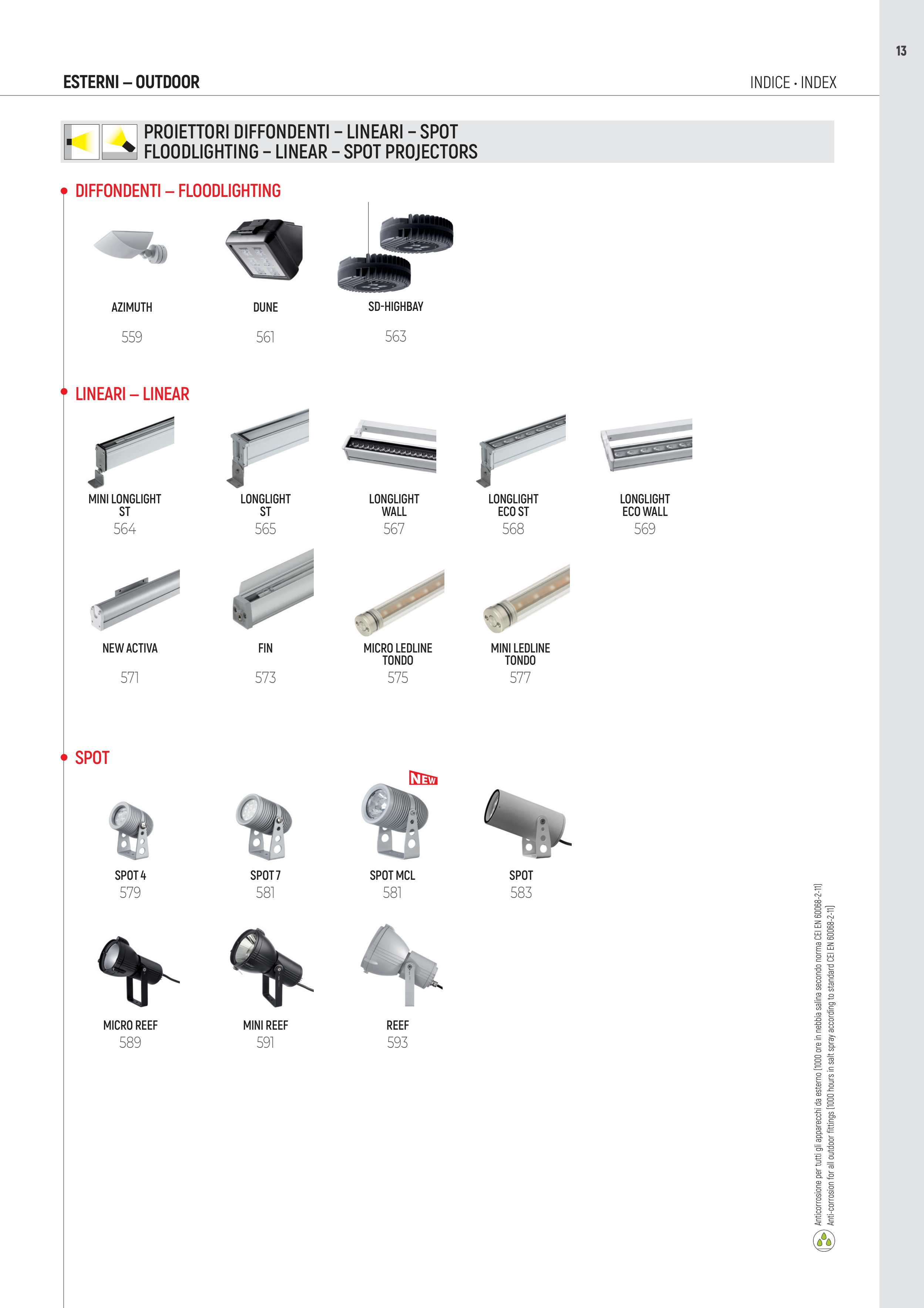 Anti-corrosion for all outdoor fittings (1000 hours in salt spray according to standard CEI EN 60068-2-11)
