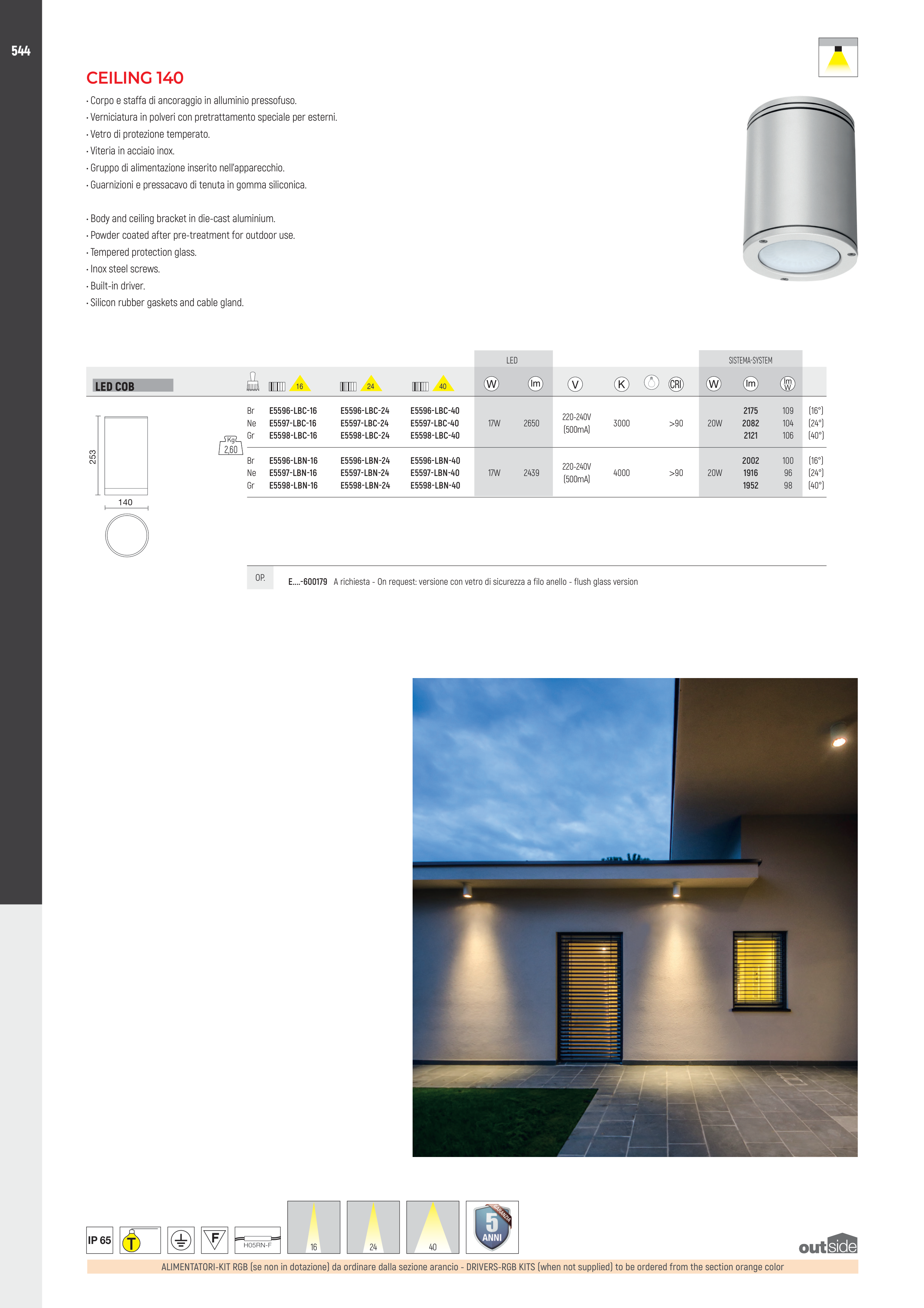 • Body and ceiling bracket in die-cast aluminium.
