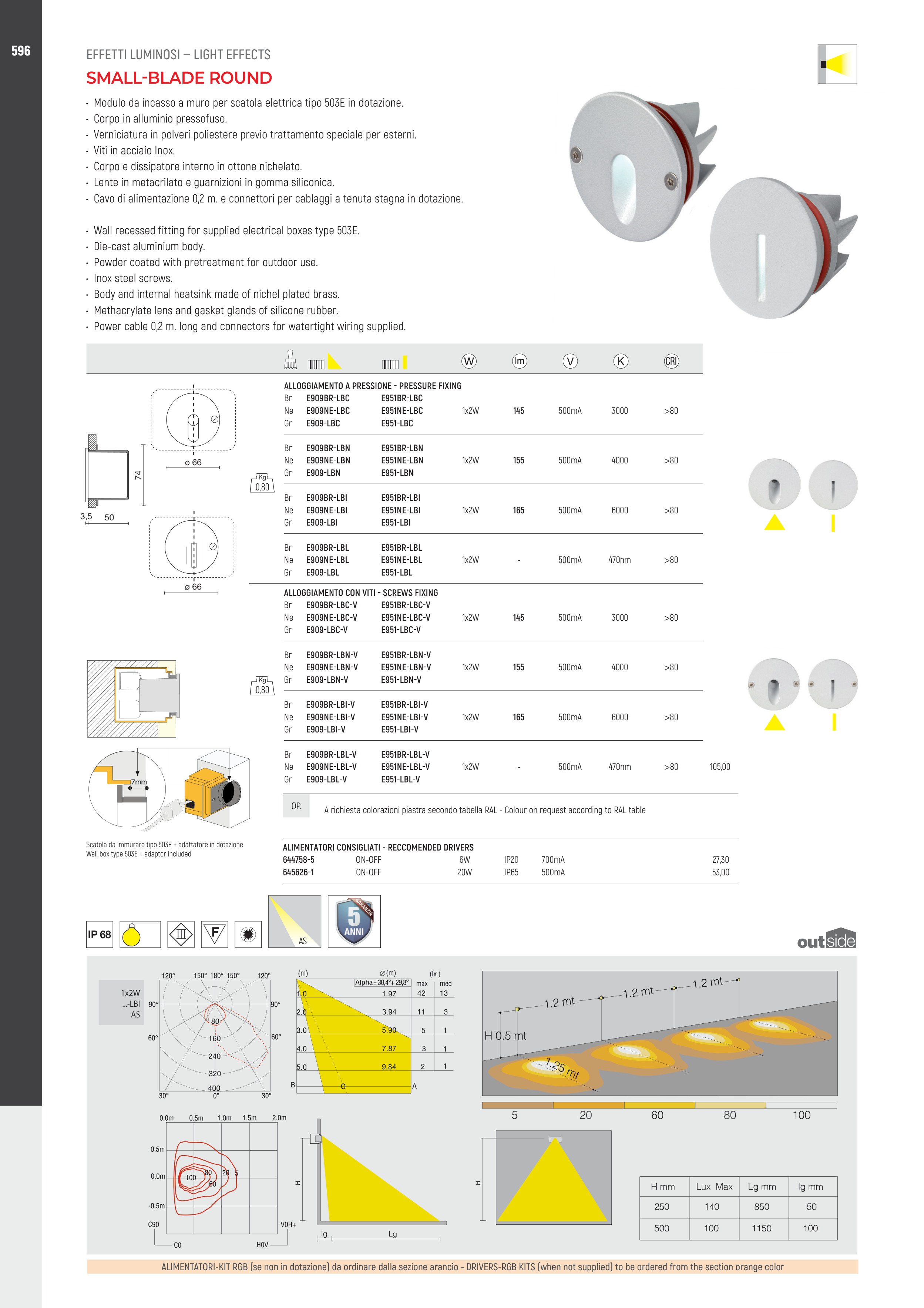 • Wall recessed fitting for supplied electrical boxes type 503E.