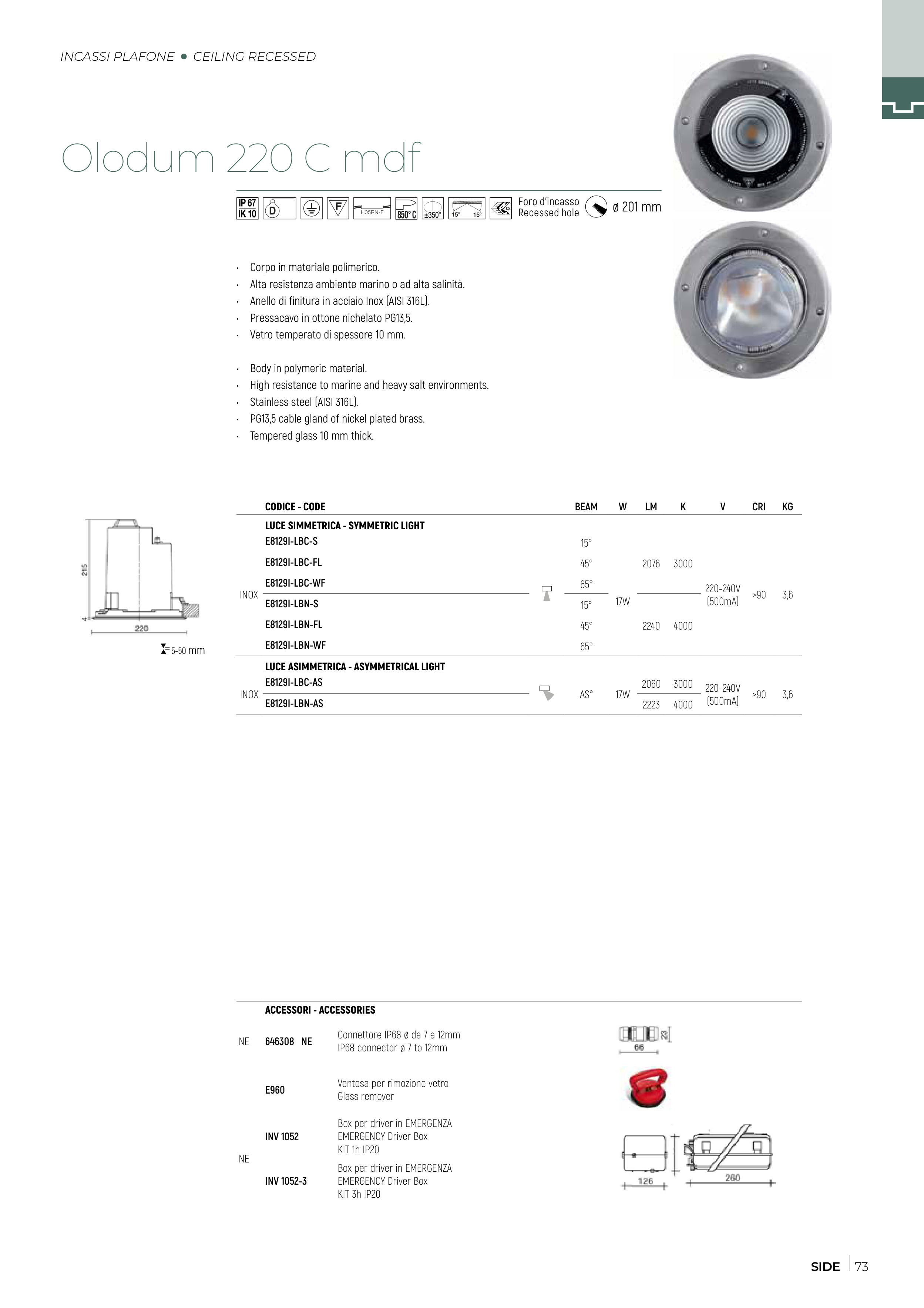 • Alta resistenza ambiente marino o ad alta salinità.