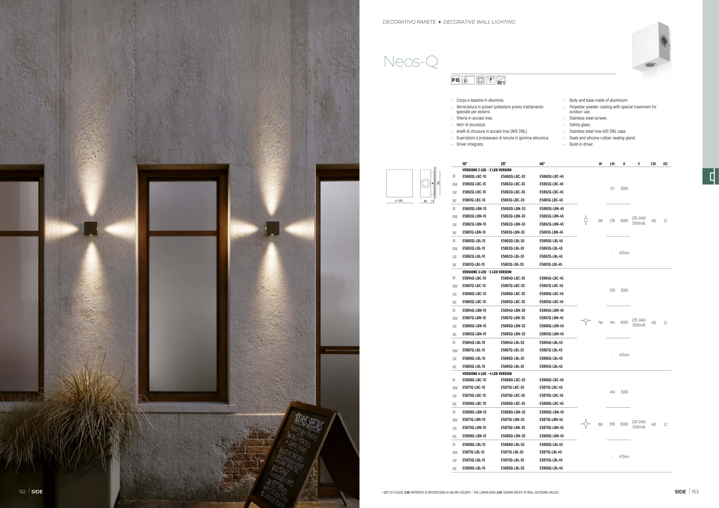I DATI DI FLUSSO (LM) RIPORTATI SI RIFERISCONO AI VALORI USCENTI - THE LUMEN DATA (LM) SHOWN REFER TO REAL OUTGOING VALUES