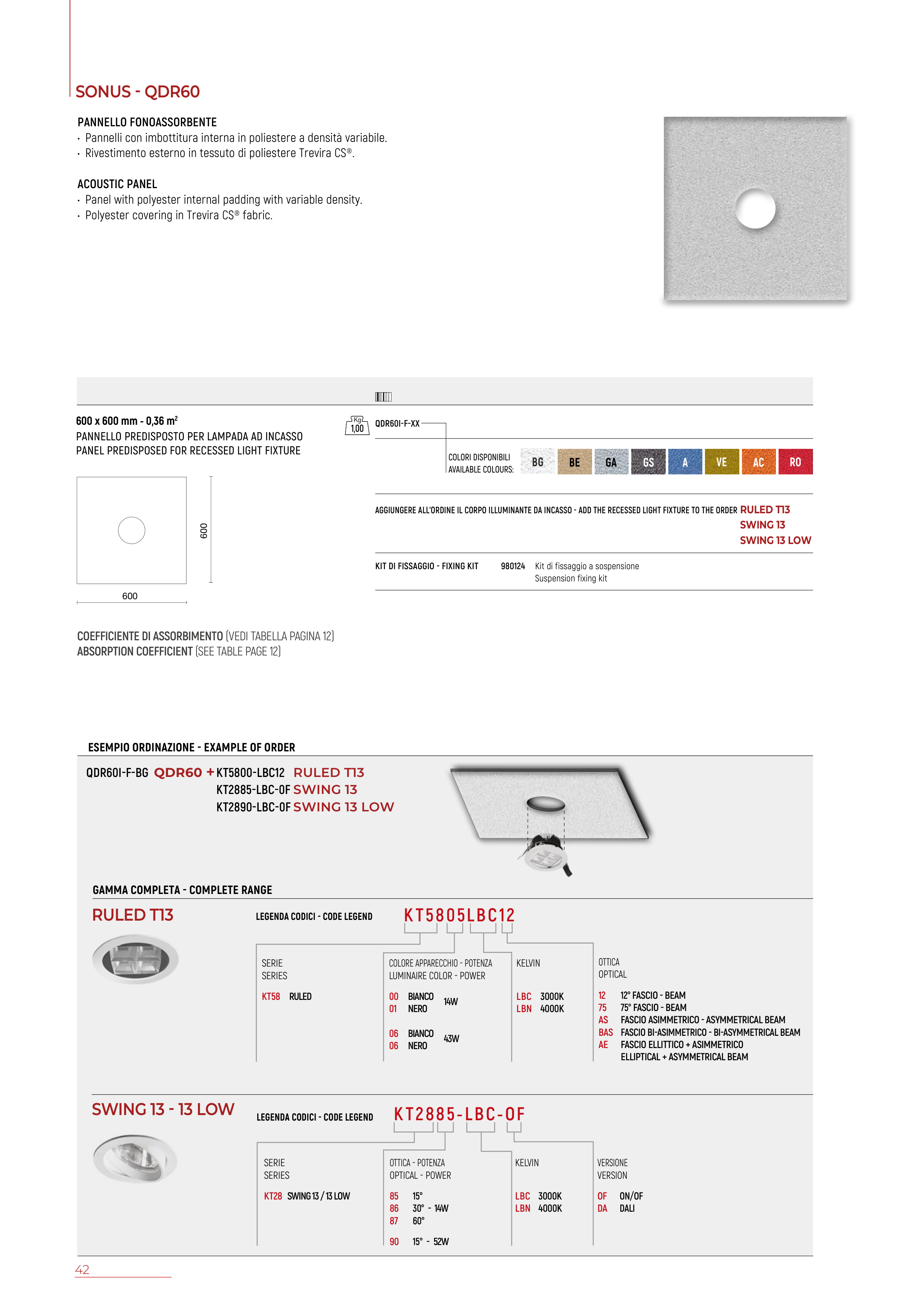AGGIUNGERE ALL’ORDINE IL CORPO ILLUMINANTE DA INCASSO - ADD THE RECESSED LIGHT FIXTURE TO THE ORDER RULED T13