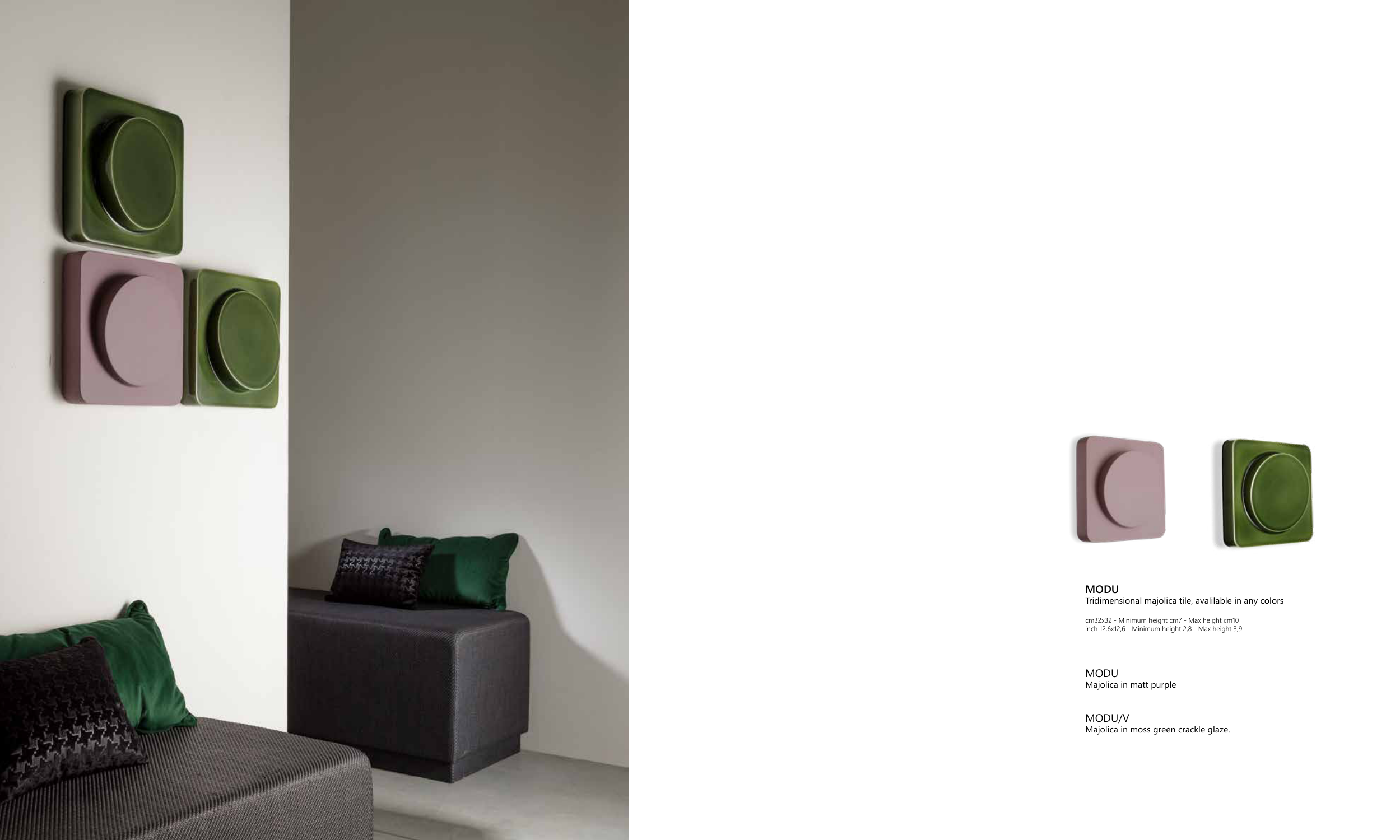 MODU Tridimensional majolica tile, avalilable in any colors