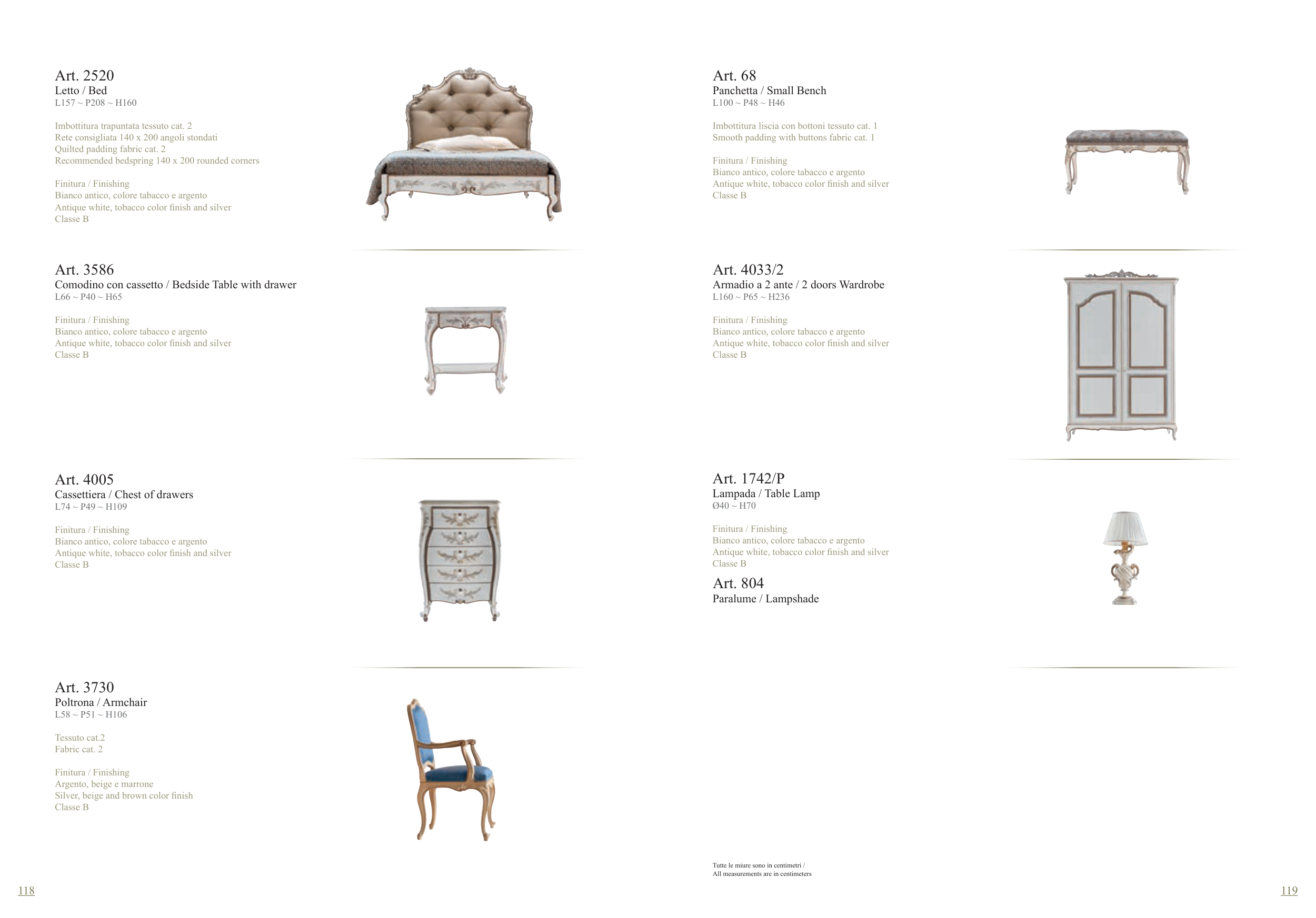 Bianco antico, colore tabacco e argento