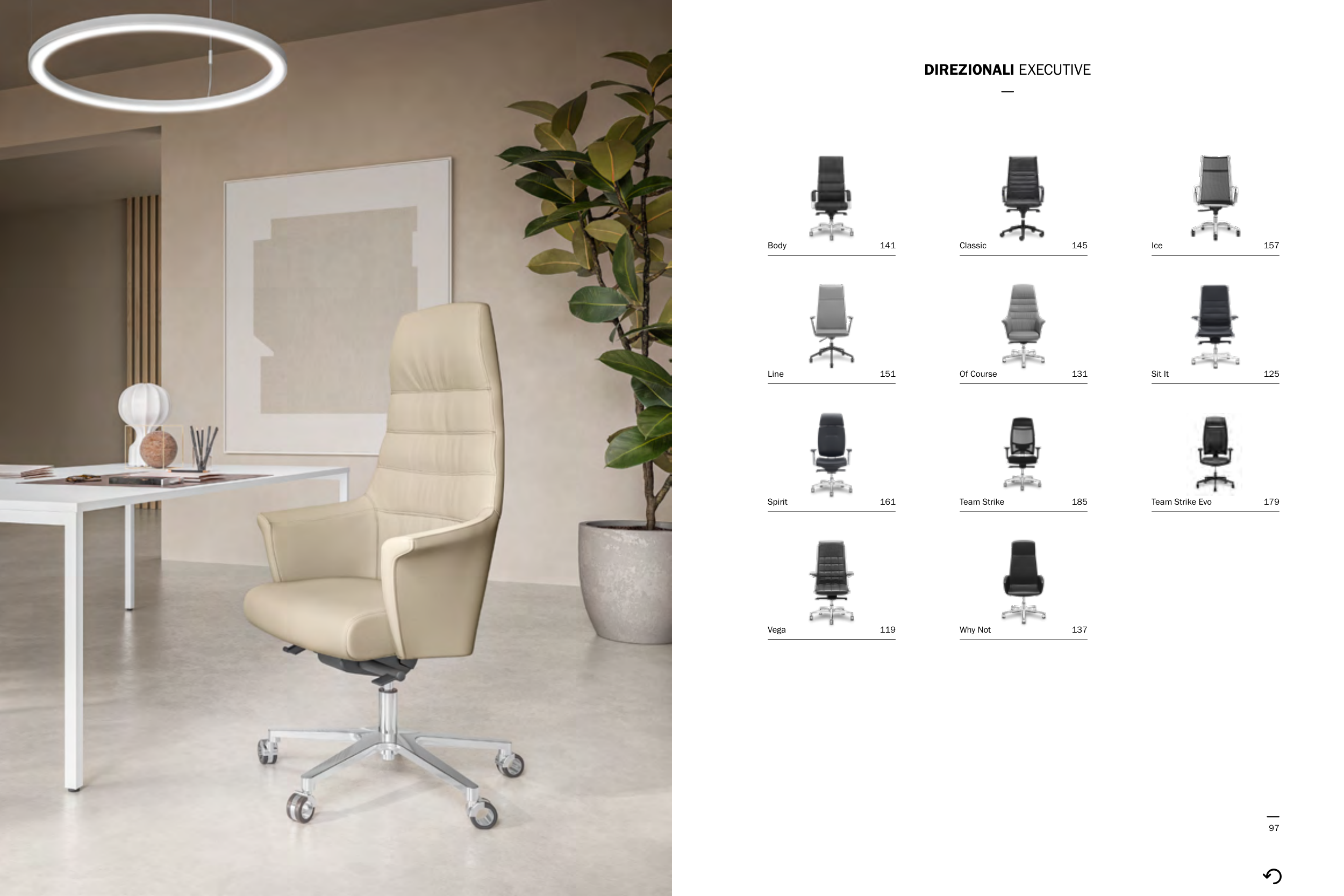 97 DIREZIONALI EXECUTIVE 179 Team Strike Evo 119 Vega 125 Sit It 131 Of Course 137 Why Not 141 Body 145 Classic 151 Line 157 Ice 161 Spirit 185 Team Strike