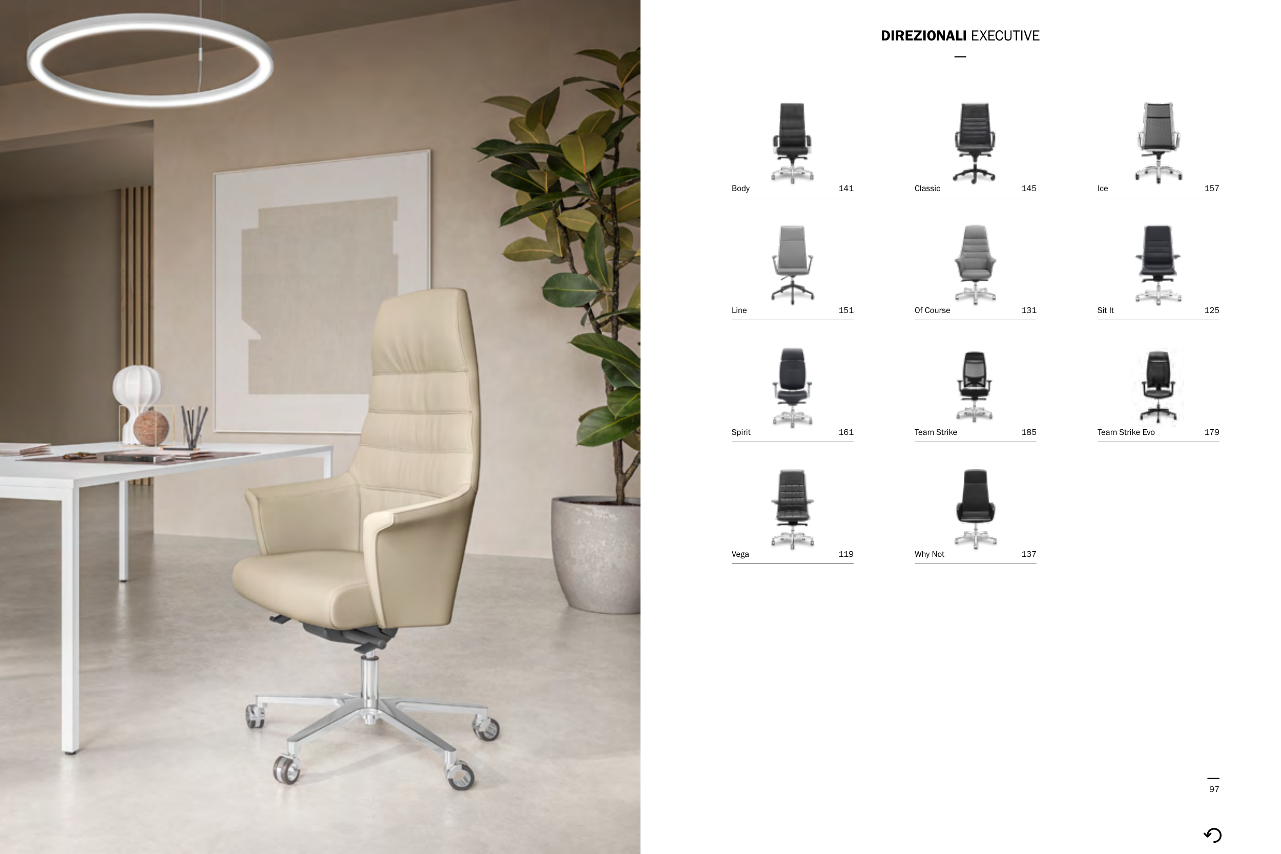 97 DIREZIONALI EXECUTIVE 179 Team Strike Evo 119 Vega 125 Sit It 131 Of Course 137 Why Not 141 Body 145 Classic 151 Line 157 Ice 161 Spirit 185 Team Strike