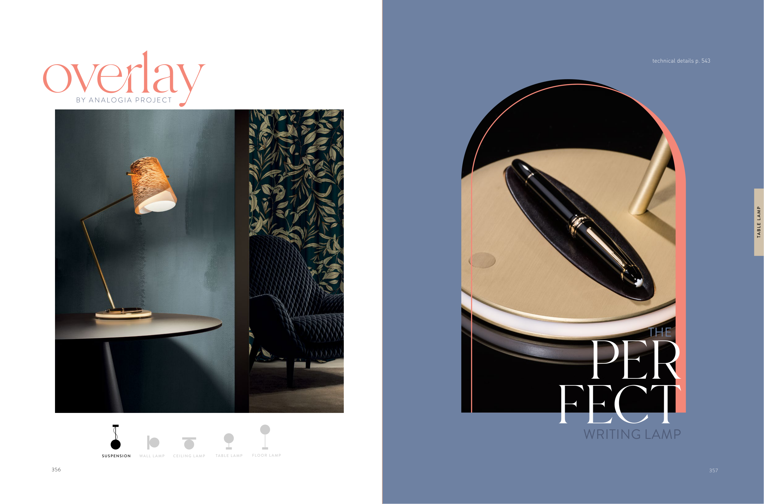 356 CEILING L AMP WALL L AMP TABLE L AMP FLOOR L AMP SUSPENSION overlay B Y A N A LO G I A P R O J E C T WRITING LAMP PER FECT THE 357 TABLE L AMP technical details p. 543