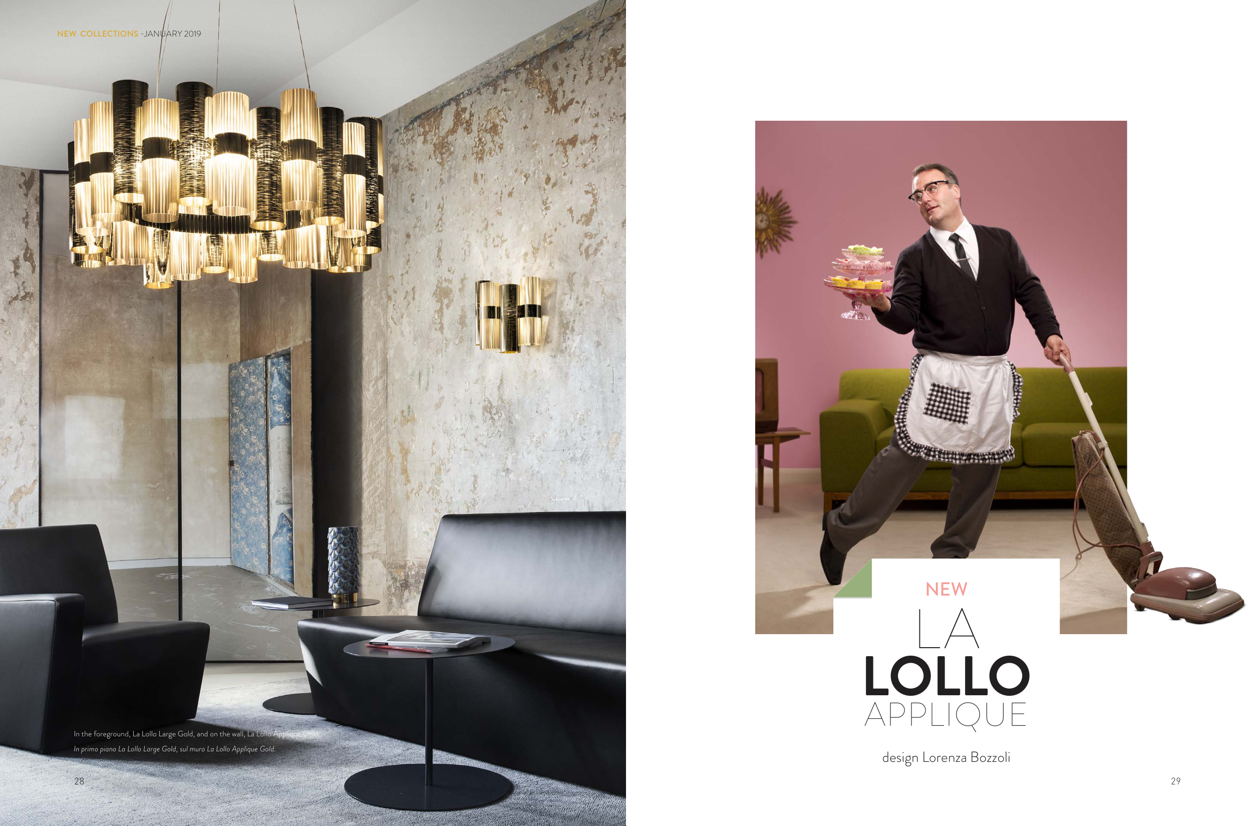29 28 NEW COLLECTIONS -JANUARY 2019 NEW LA LOLLO APPLIQUE design Lorenza Bozzoli In the foreground, La Lollo Large Gold, and on the wall, La Lollo Applique Gold. In primo piano La Lollo Large Gold, sul muro La Lollo Applique Gold.