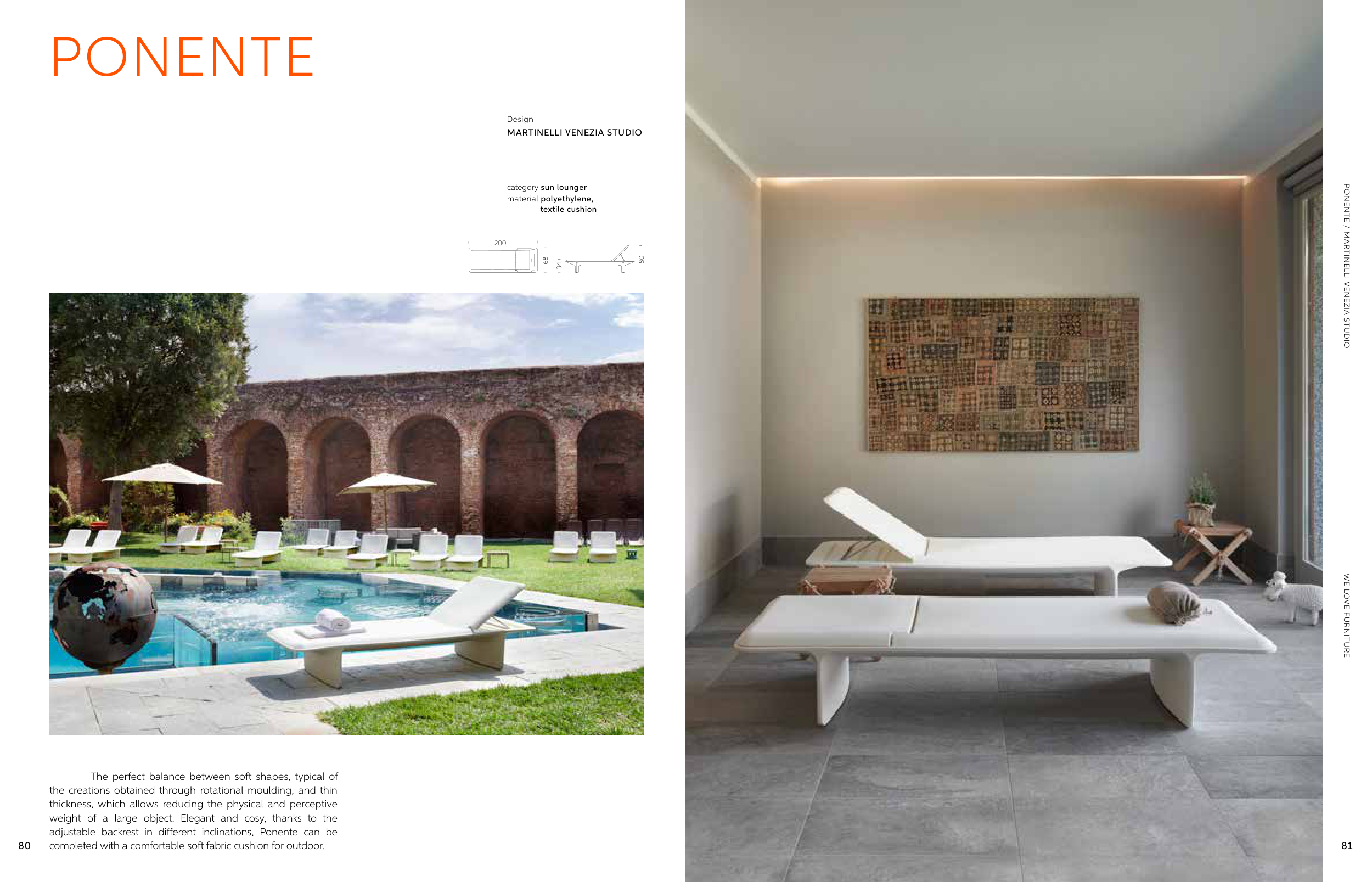 adjustable backrest in different inclinations, Ponente can be