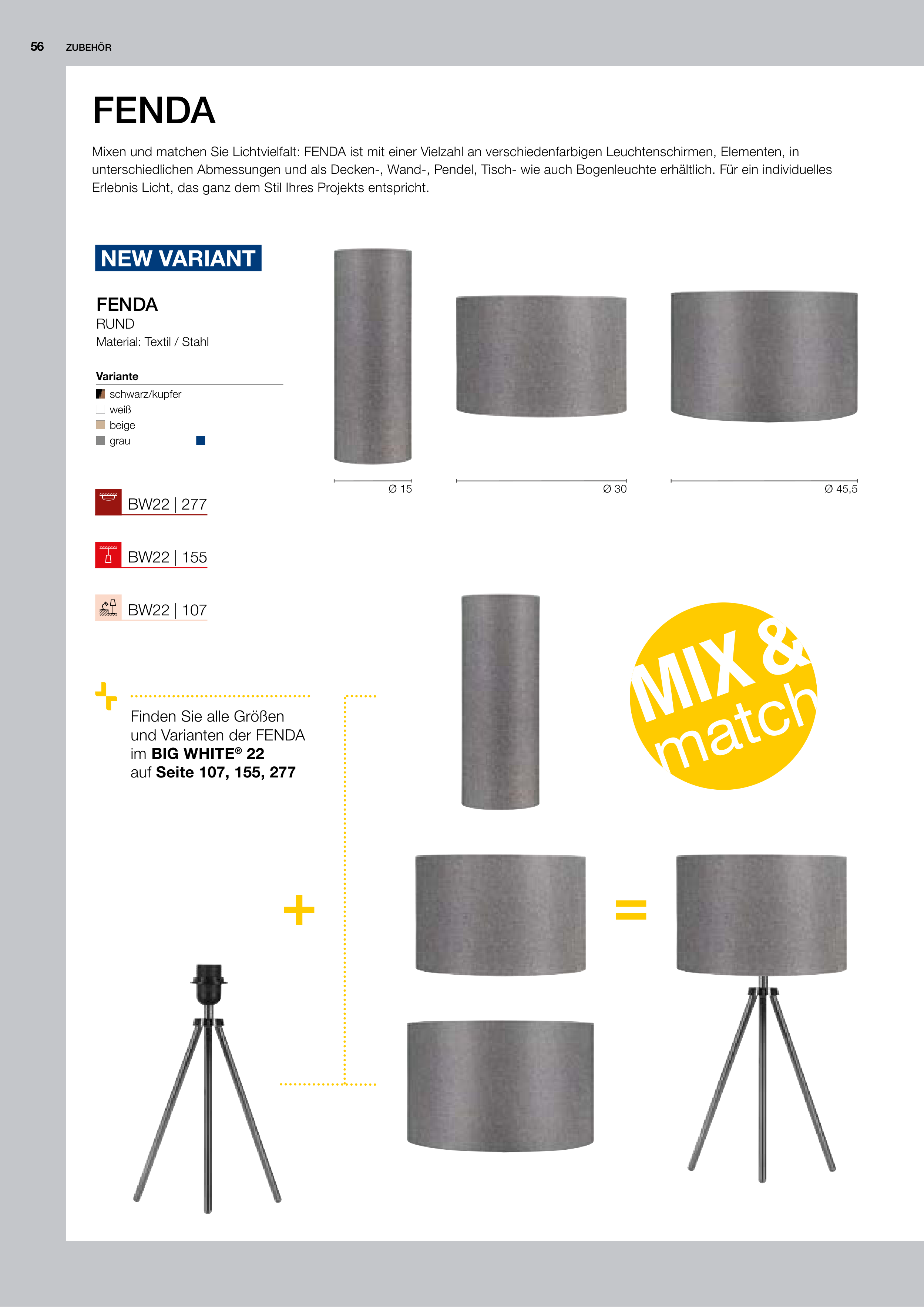 Mixen und matchen Sie Lichtvielfalt: FENDA ist mit einer Vielzahl an verschiedenfarbigen Leuchtenschirmen, Elementen, in