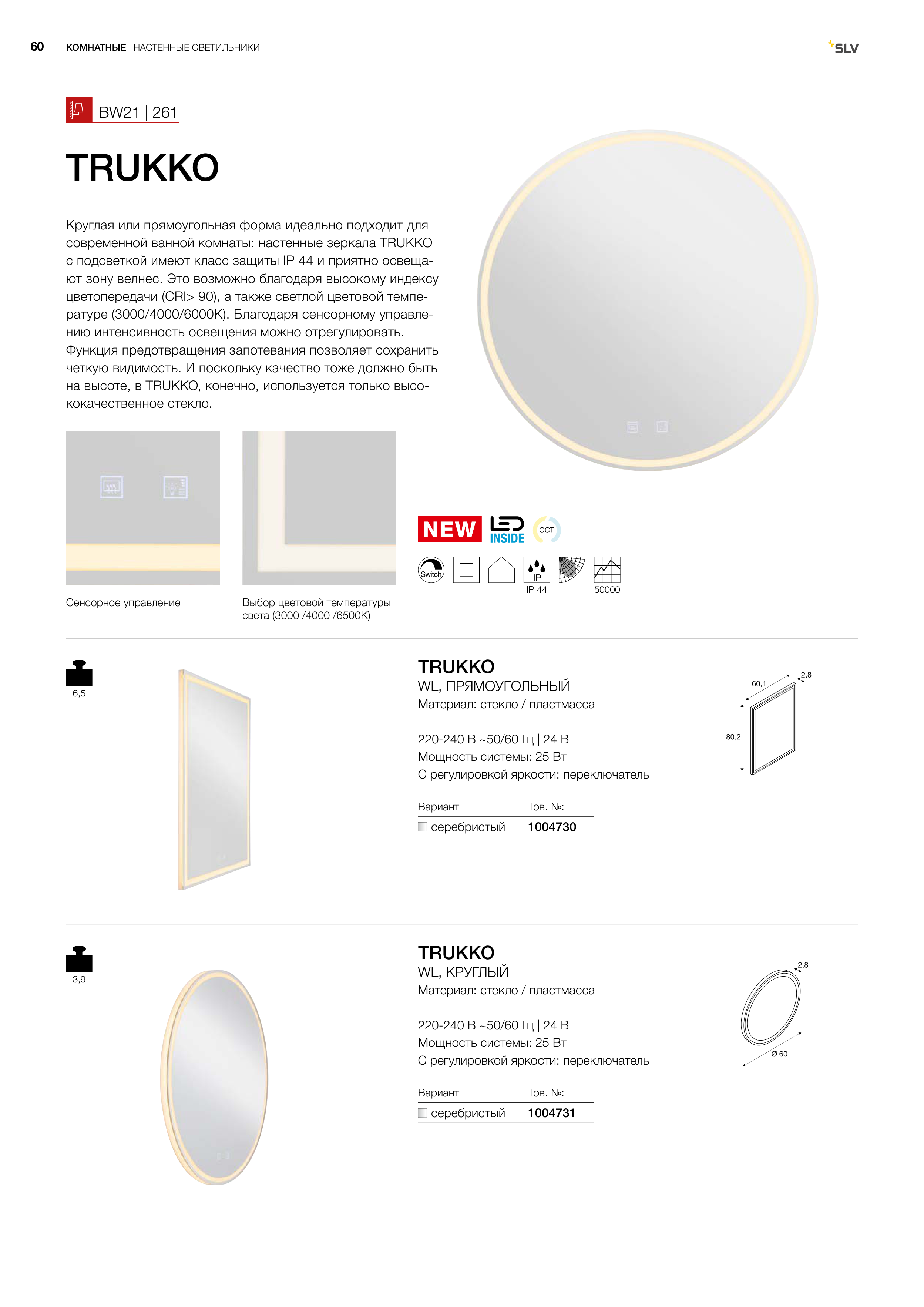 с подсветкой имеют класс защиты IP 44 и приятно освеща-
