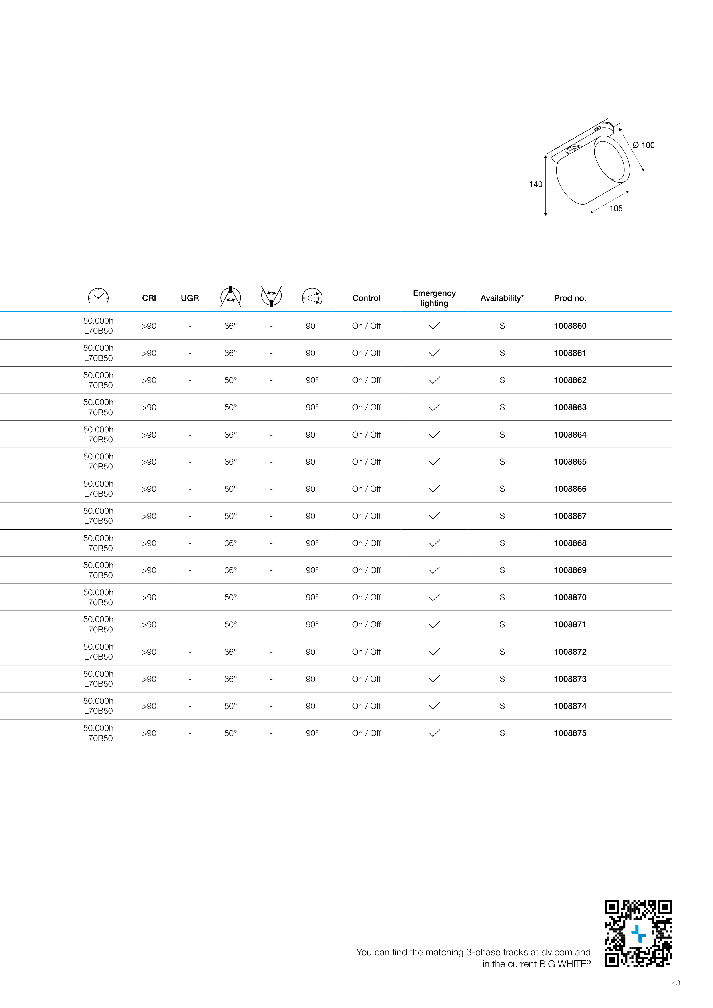 3-ph, 17 W, 940, 50°, white