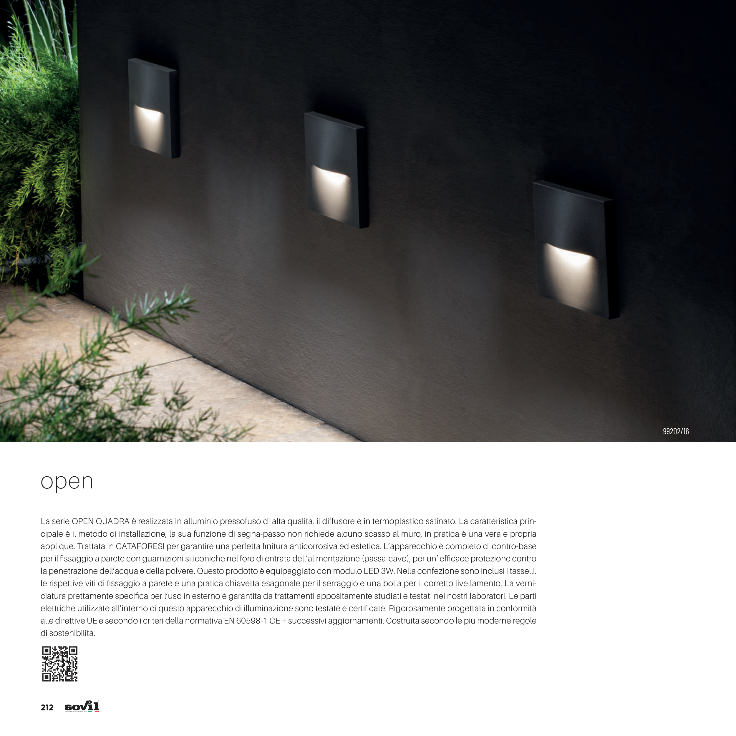 La serie OPEN QUADRA è realizzata in alluminio pressofuso di alta qualità, il diffusore è in termoplastico satinato. La caratteristica prin-