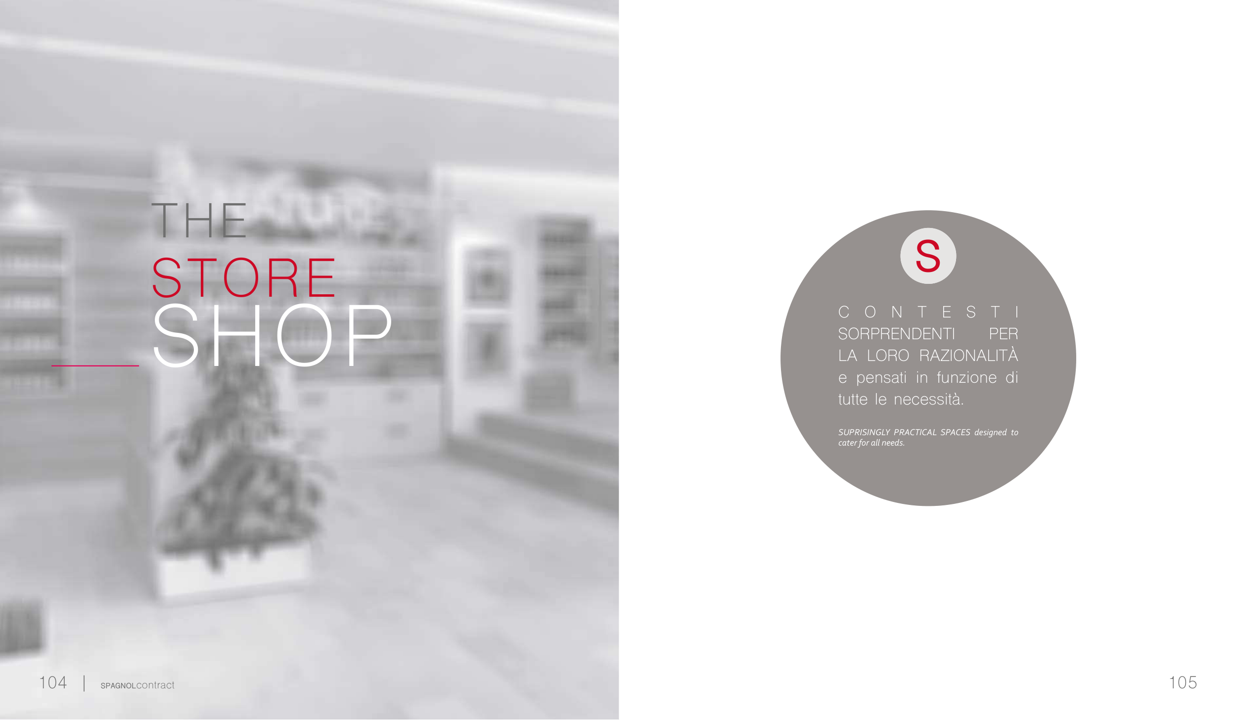 THE STORE SHOP SUPRISINGLY PRACTICAL SPACES designed to cater for all needs. C O N T E S T I SORPRENDENTI PER LA LORO RAZIONALITÀ e pensati in funzione di tutte le necessità. S 105 104 | SPAGNOLcontract