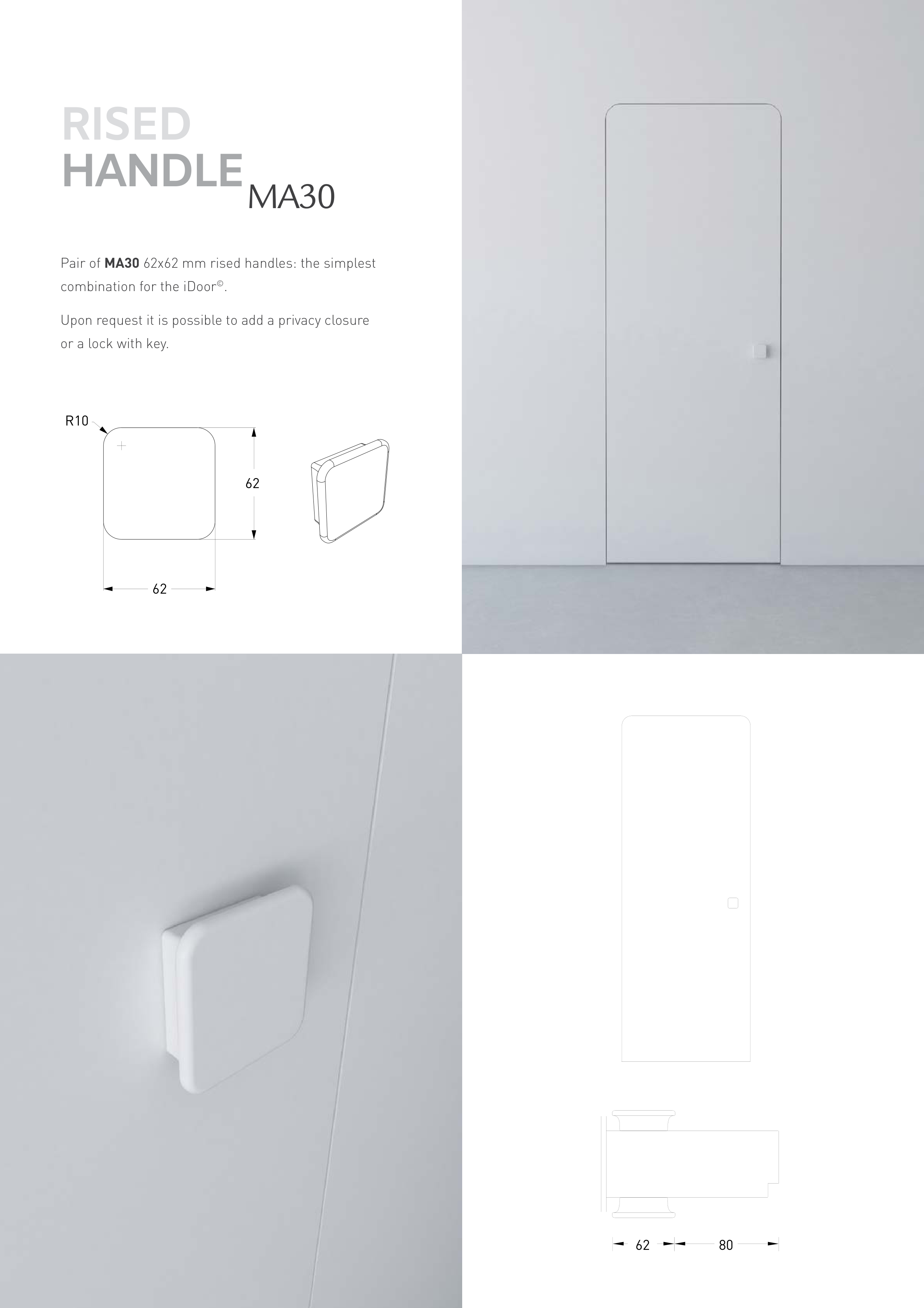 Pair of MA30 62x62 mm rised handles: the simplest