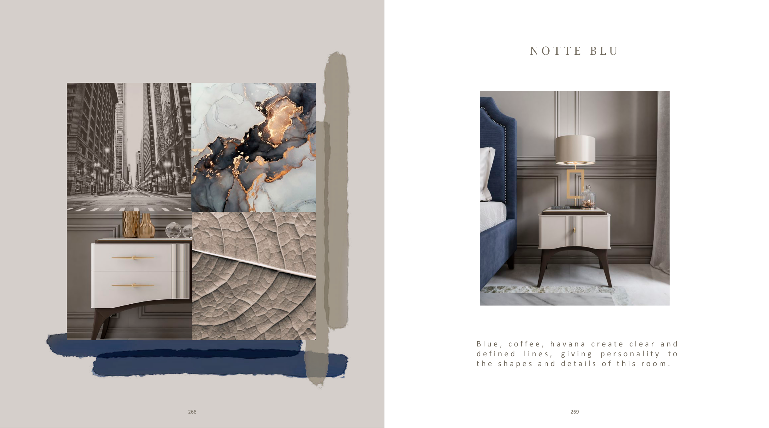 N O T T E B L U B l u e , c o f f e e , h a v a n a c r e a t e c l e a r a n d d e f i n e d l i n e s , g i v i n g p e r s o n a l i t y t o t h e s h a p e s a n d d e t a i l s o f t h i s r o o m . 269 268