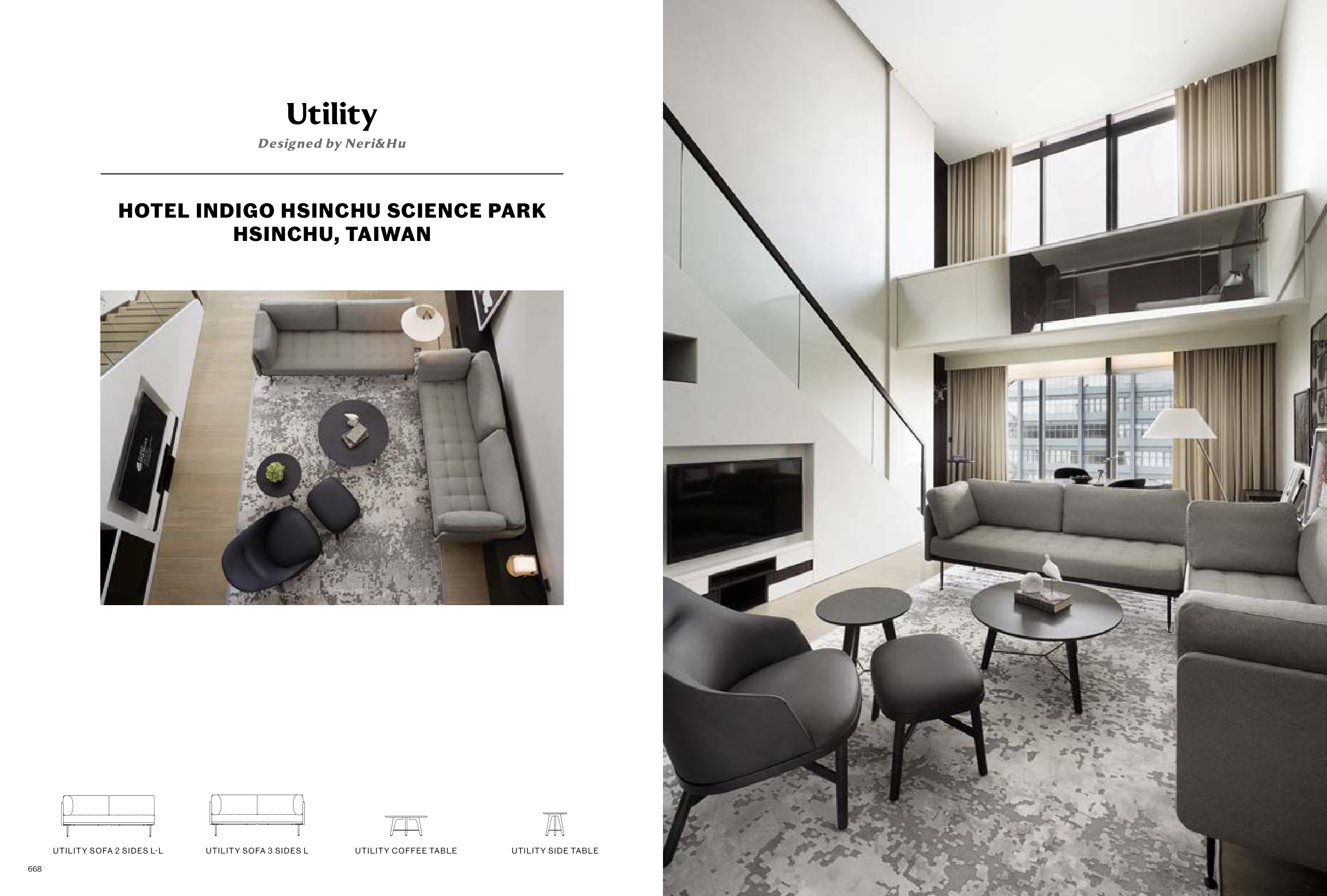 Utility HOTEL INDIGO HSINCHU SCIENCE PARK HSINCHU, TAIWAN Designed by Neri&Hu UTILITY SOFA 2 SIDES L-L UTILITY SOFA 3 SIDES L UTILITY COFFEE TABLE UTILITY SIDE TABLE 668