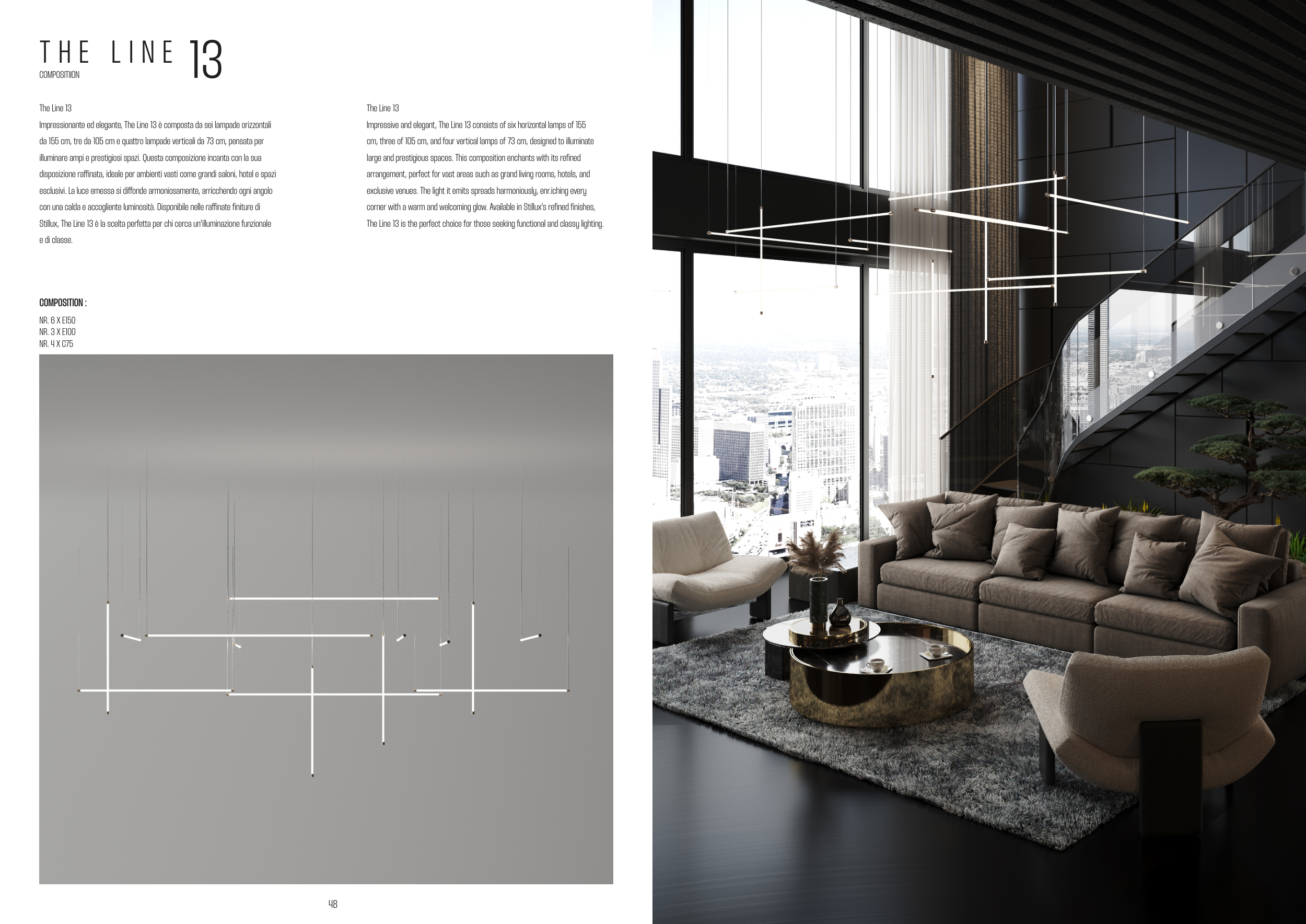 Impressive and elegant, The Line 13 consists of six horizontal lamps of 155