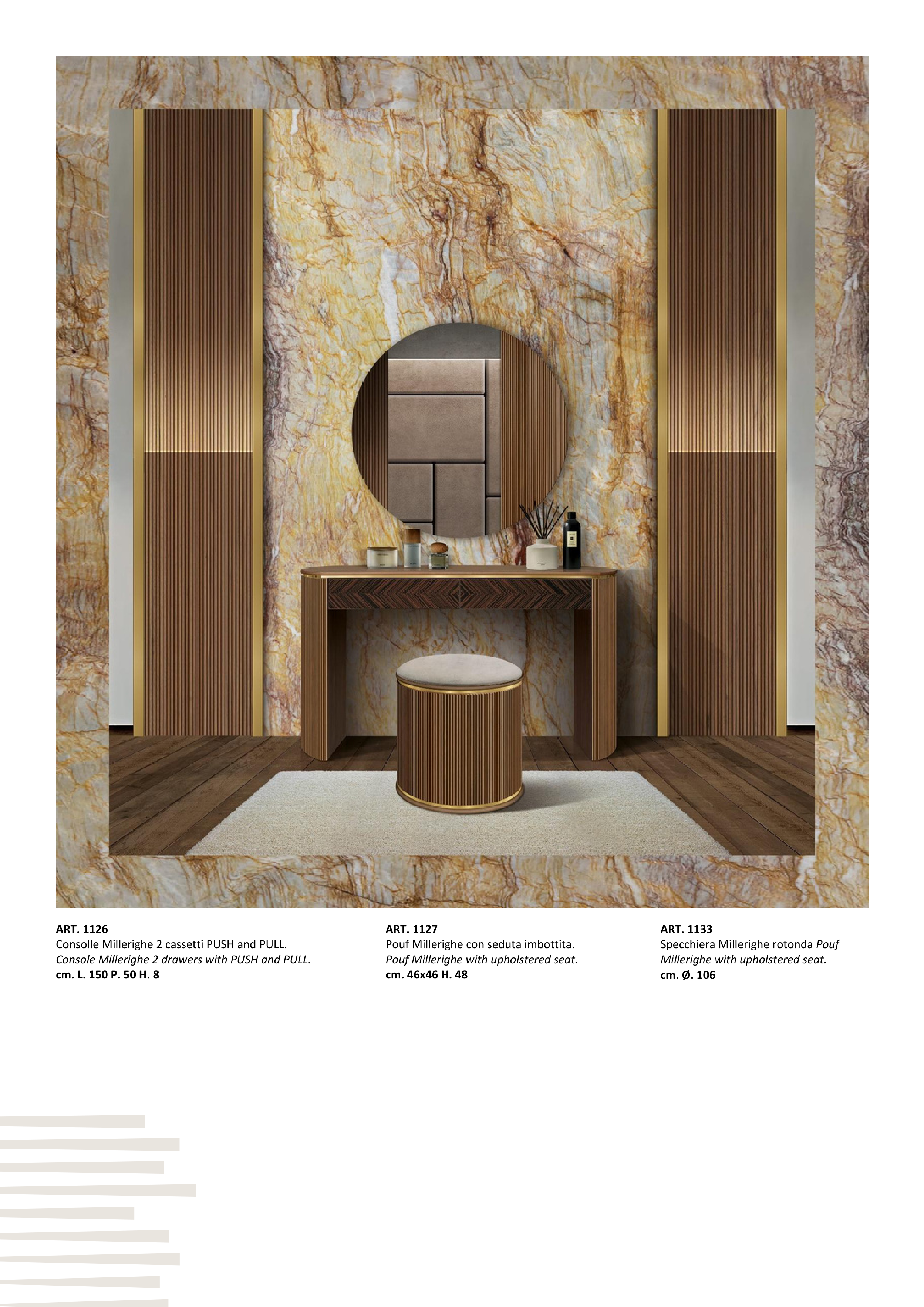 Specchiera Millerighe rotonda Pouf