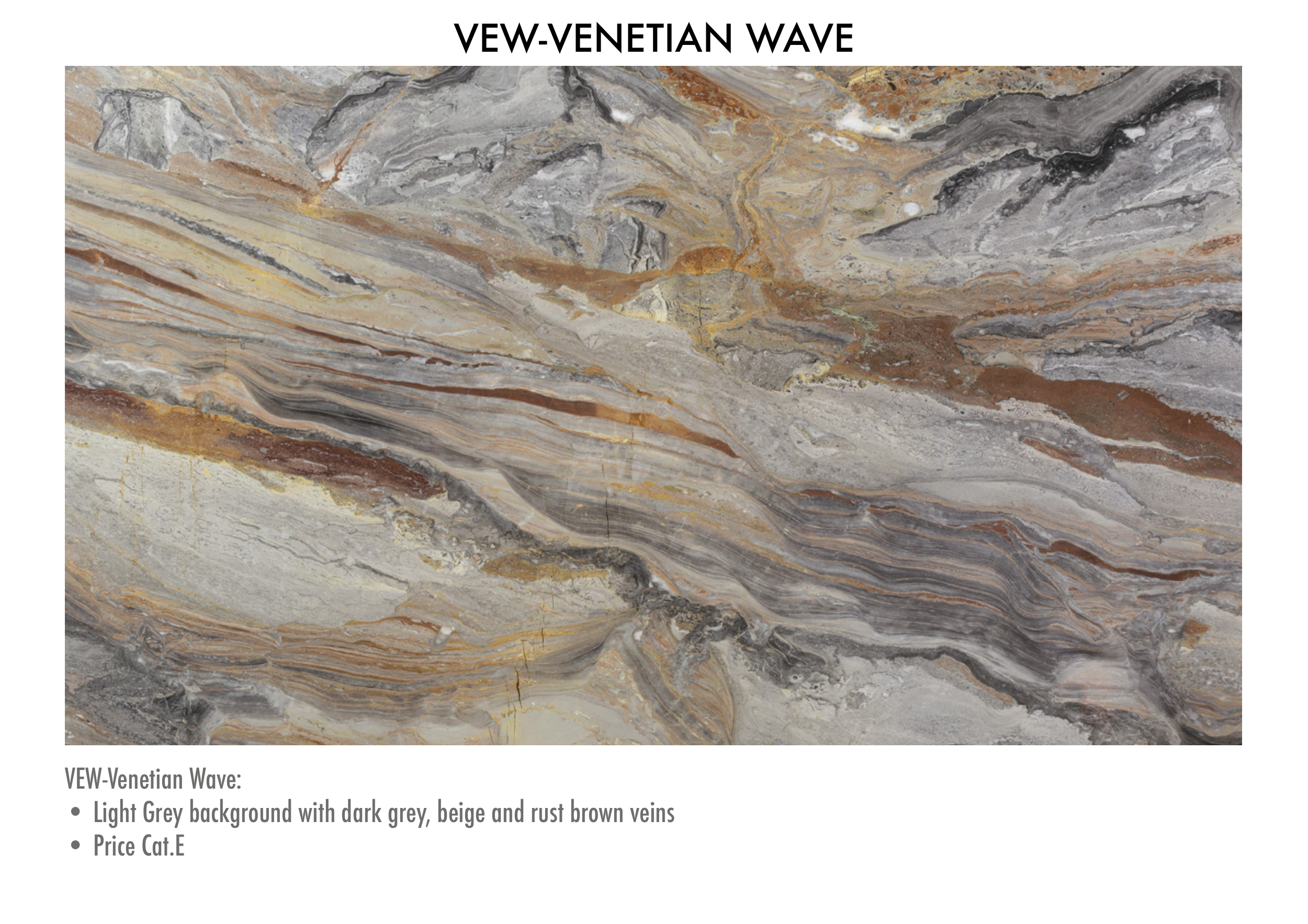 • Light Grey background with dark grey, beige and rust brown veins