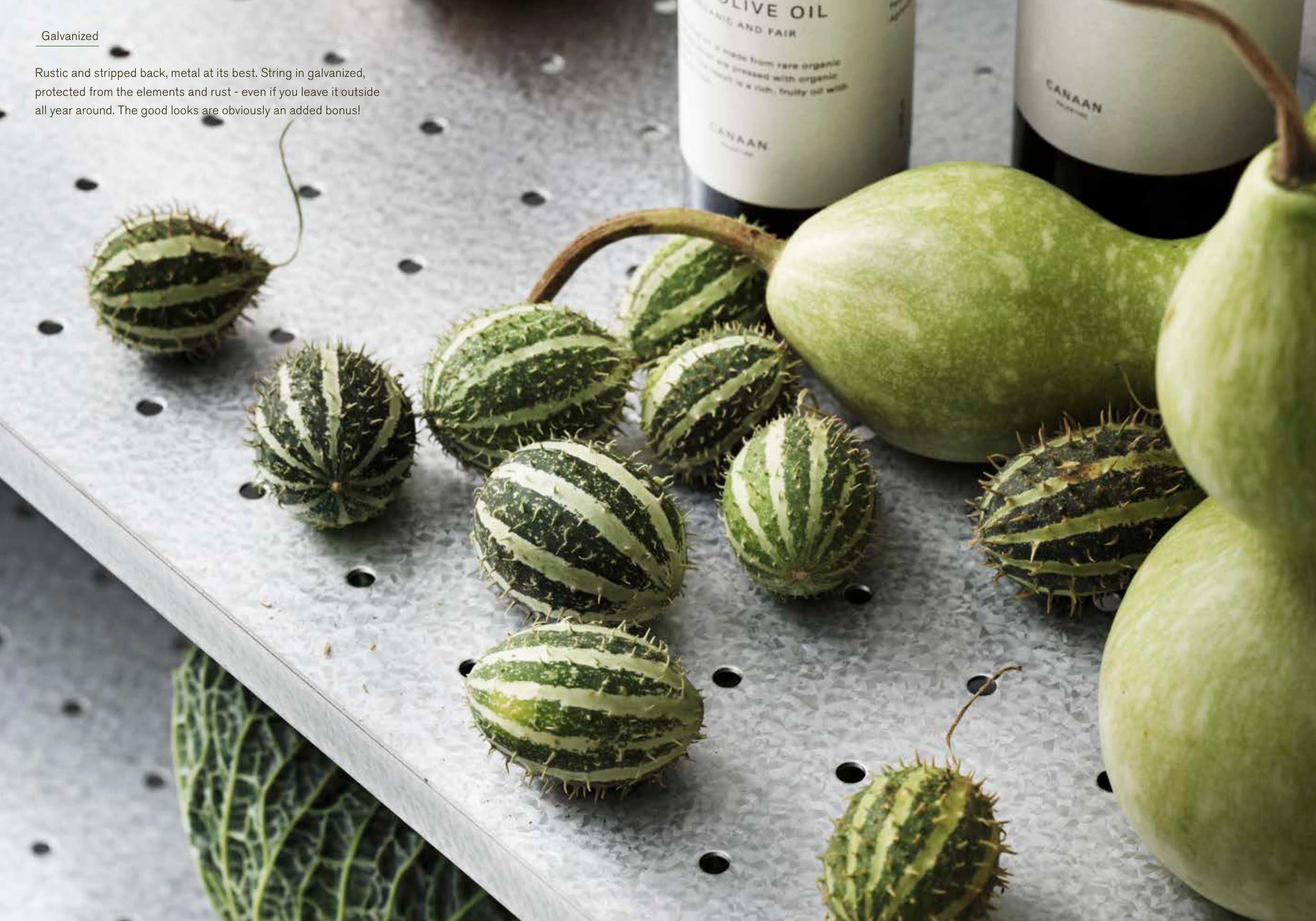Galvanized Rustic and stripped back, metal at its best. String in galvanized, protected from the elements and rust - even if you leave it outside all year around. The good looks are obviously an added bonus!