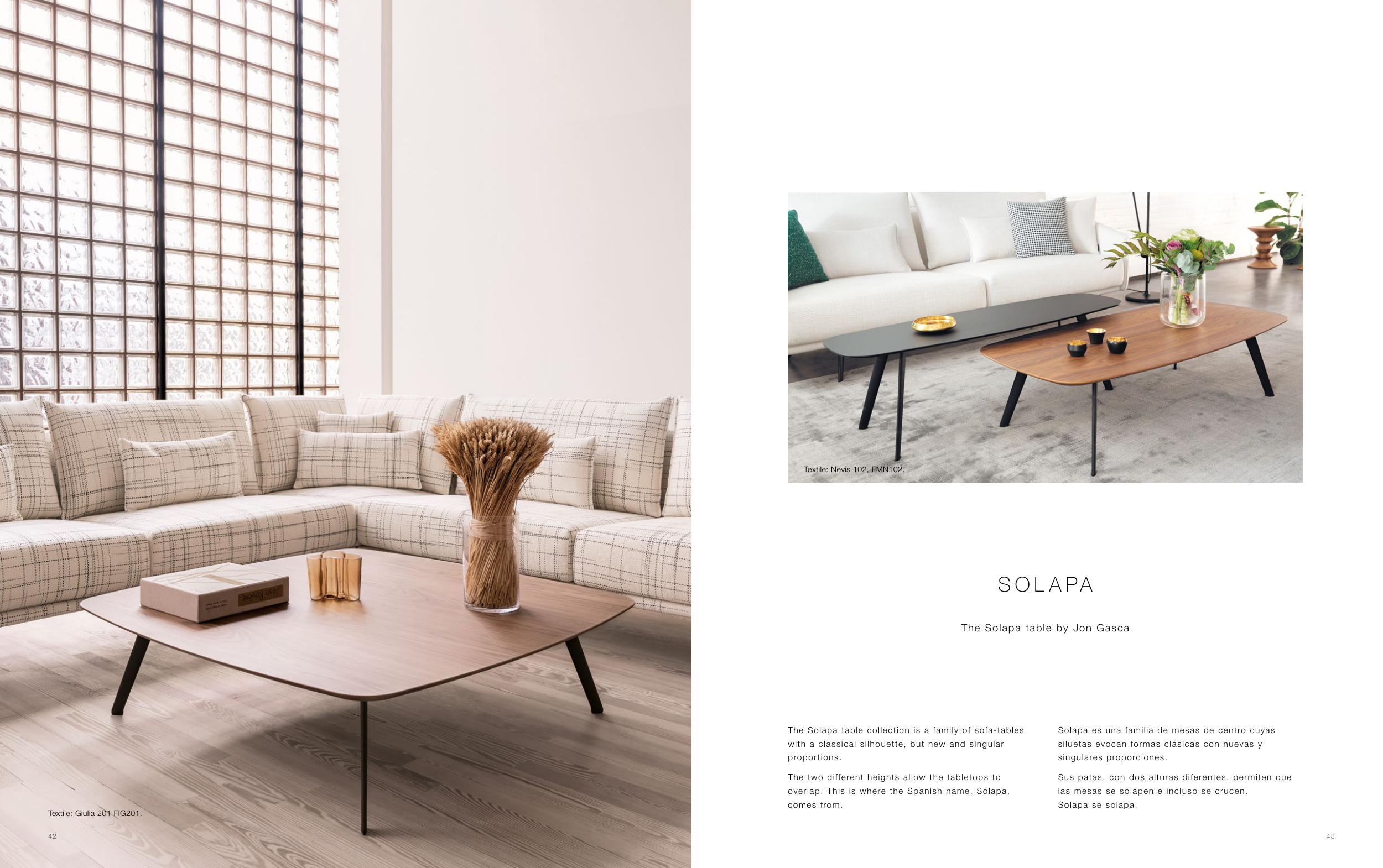 The Solapa table collection is a family of sofa-tables