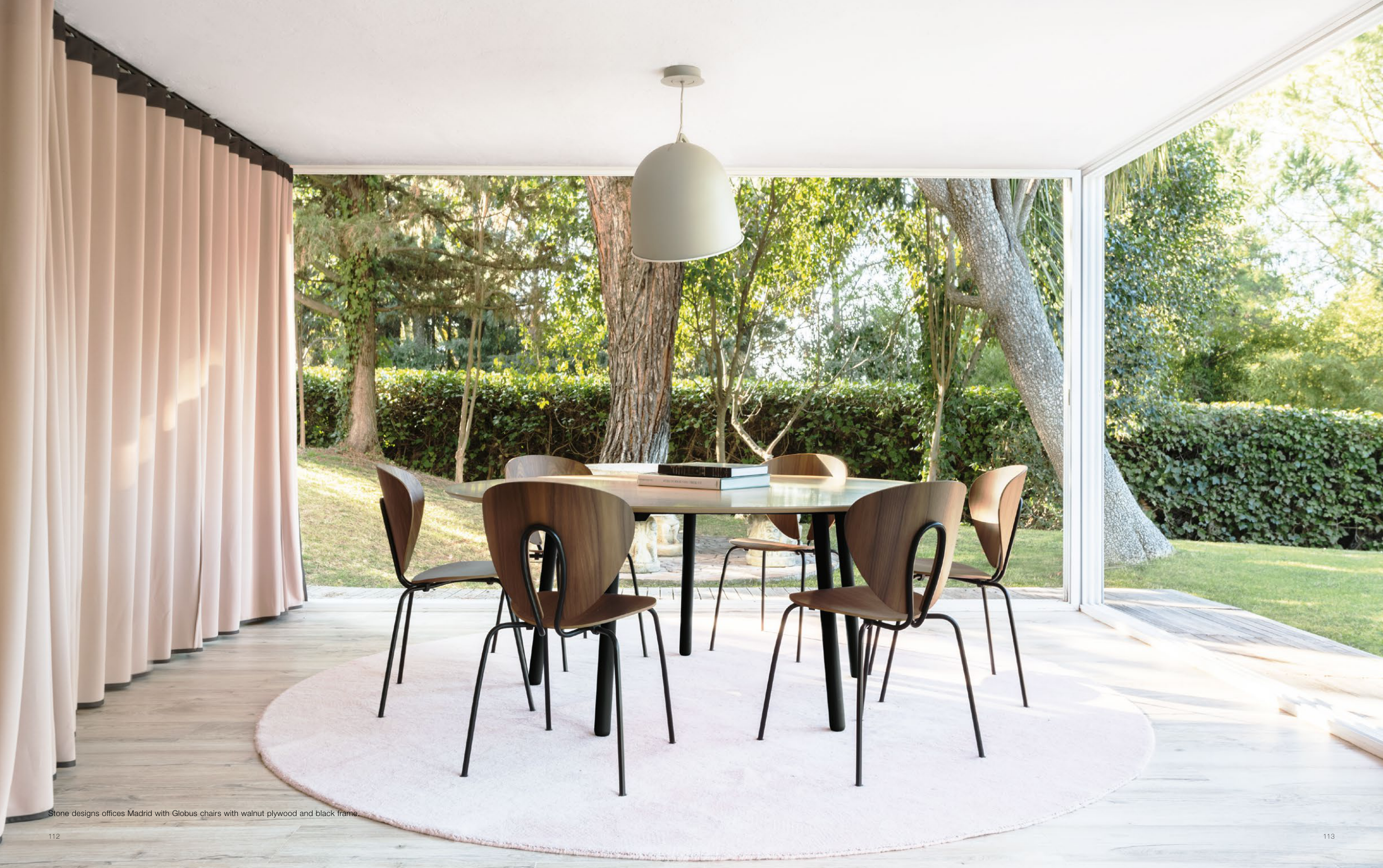 Stone designs offices Madrid with Globus chairs with walnut plywood and black frame.