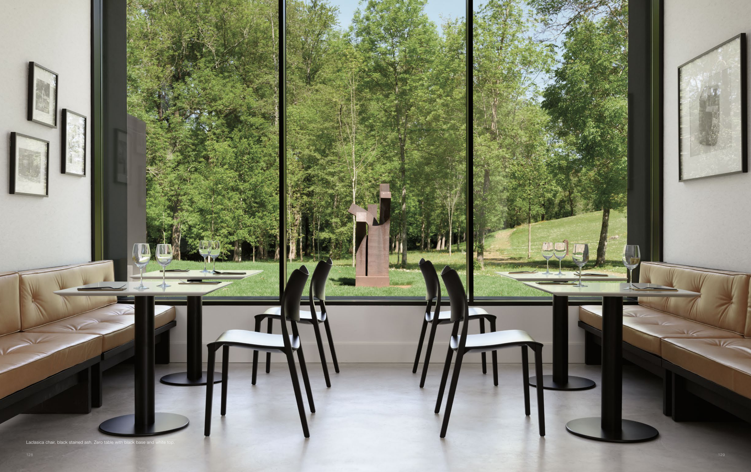Laclasica chair, black stained ash. Zero table with black base and white top.