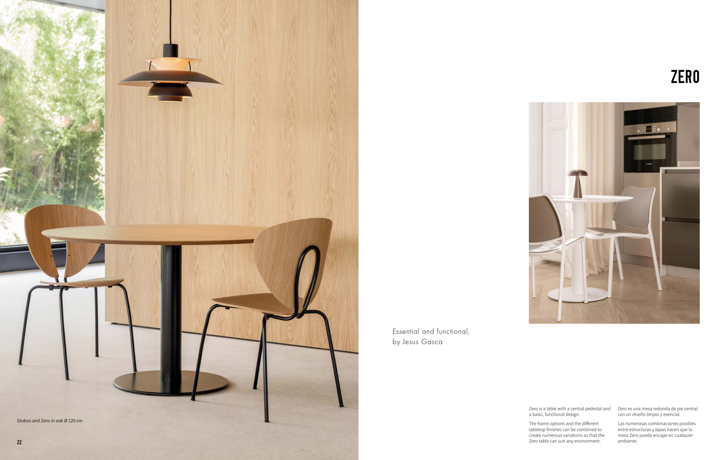 Zero is a table with a central pedestal and