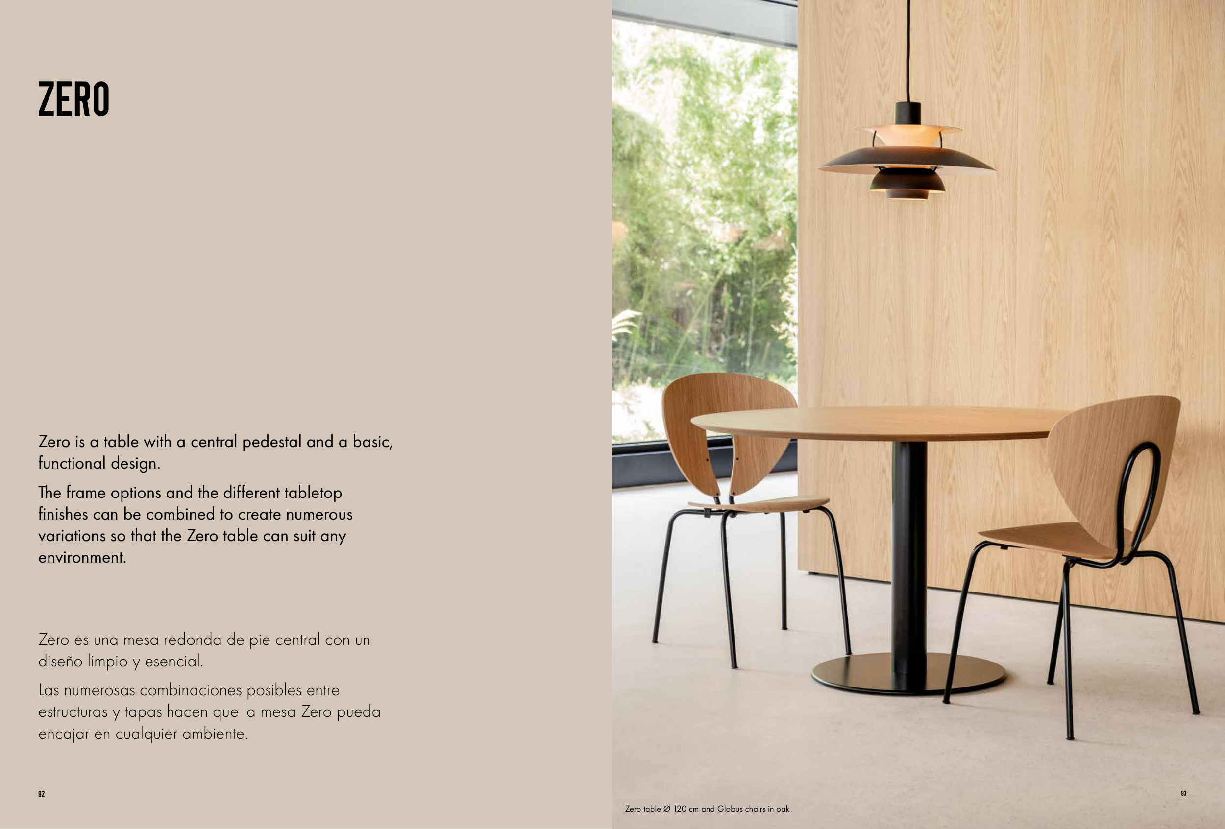 Zero is a table with a central pedestal and a basic,